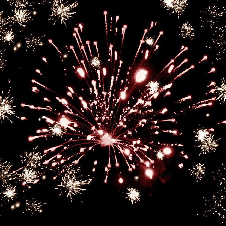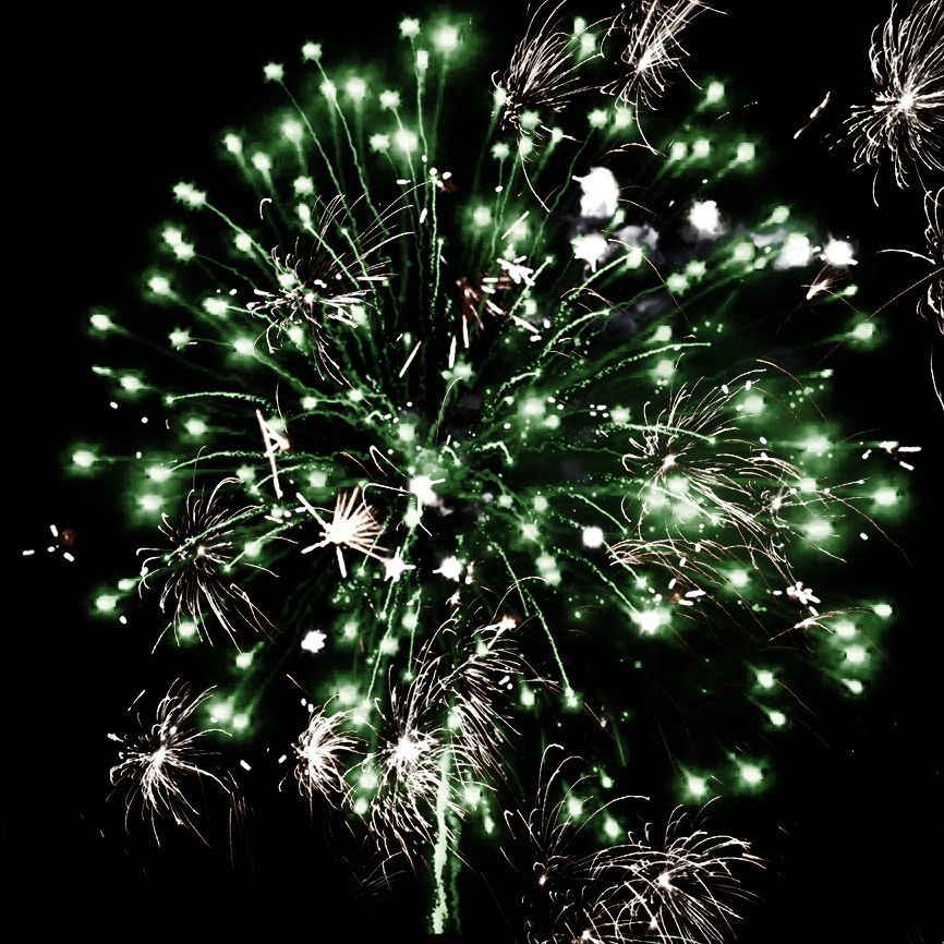 2-3. синих, зелёных огней и серебряных трещащих искр.