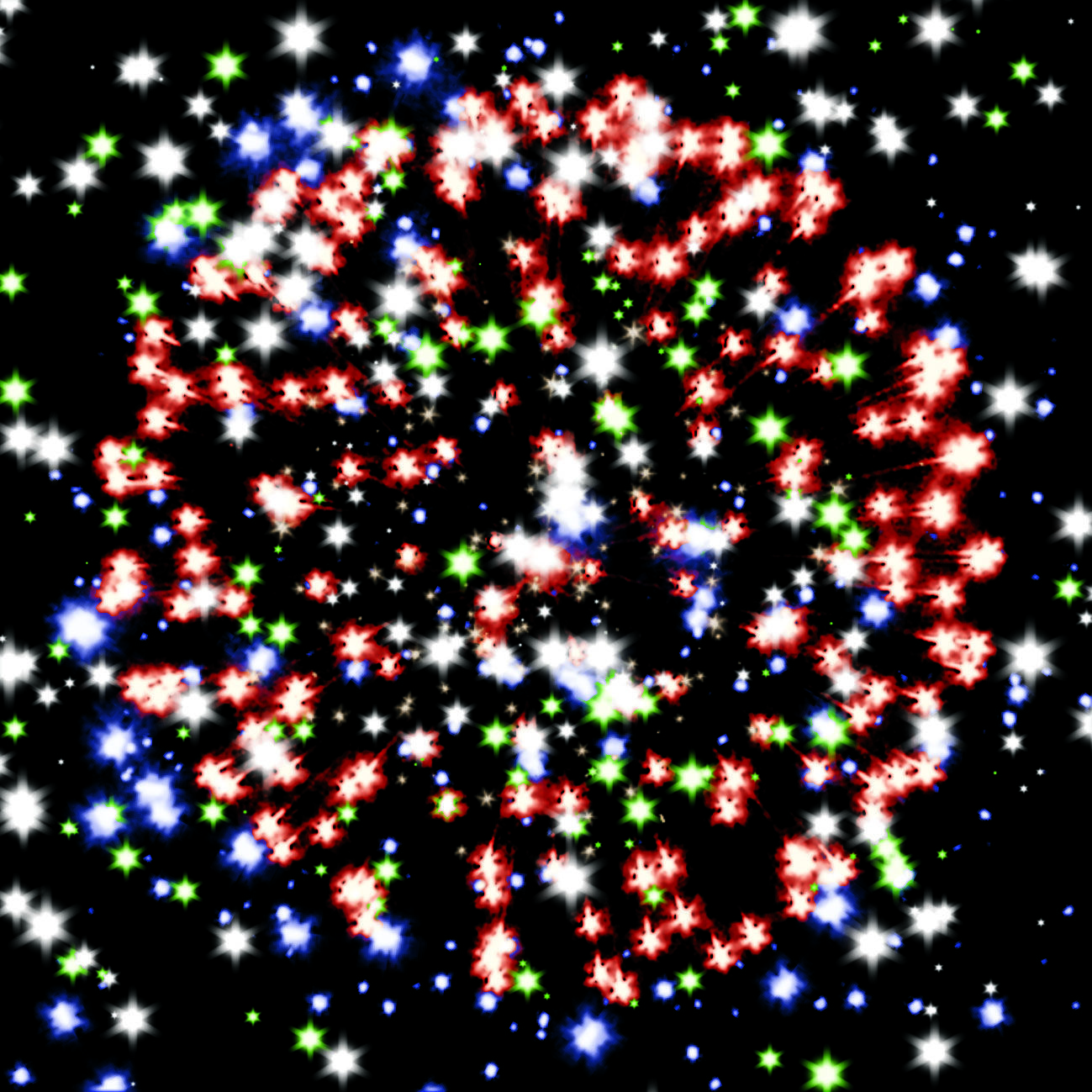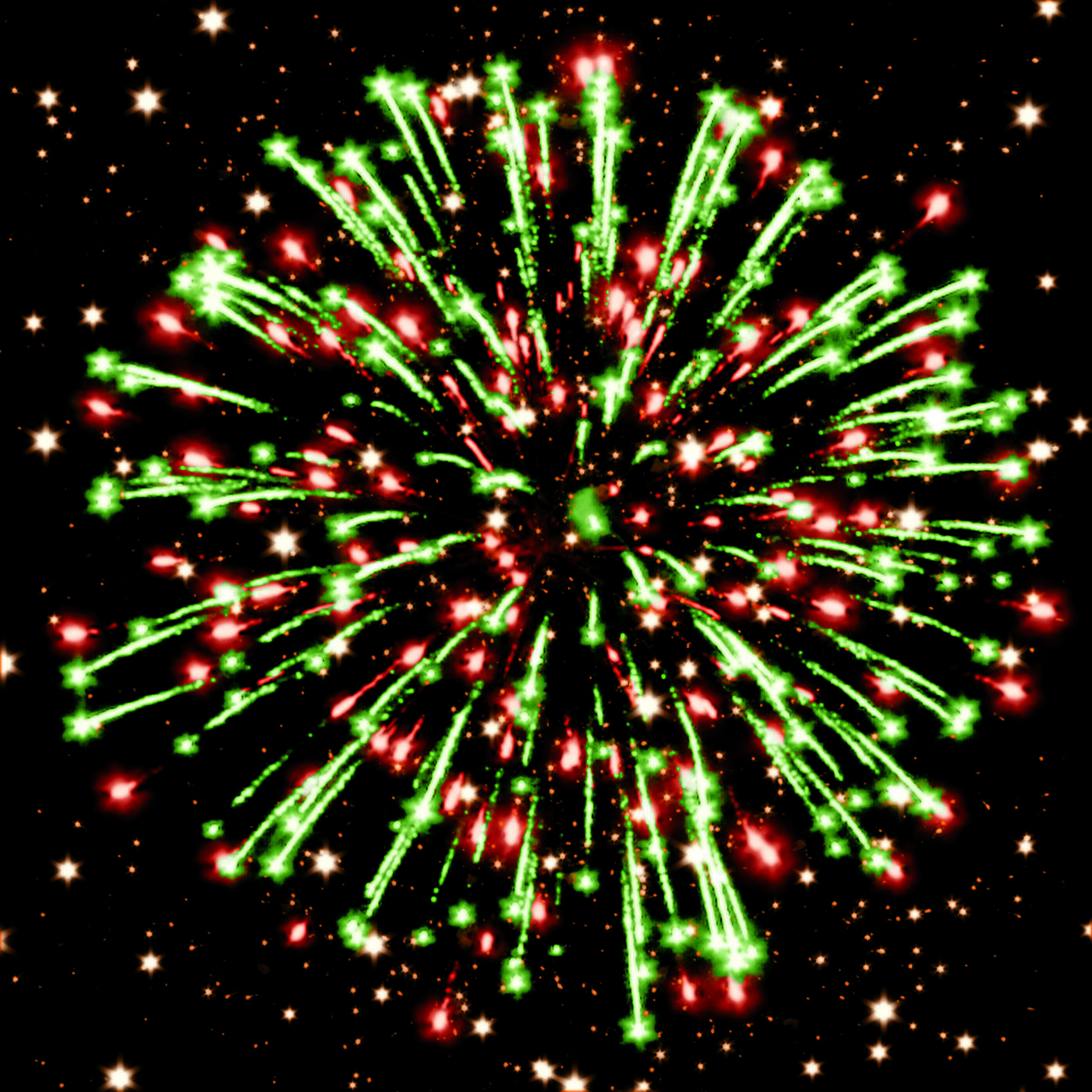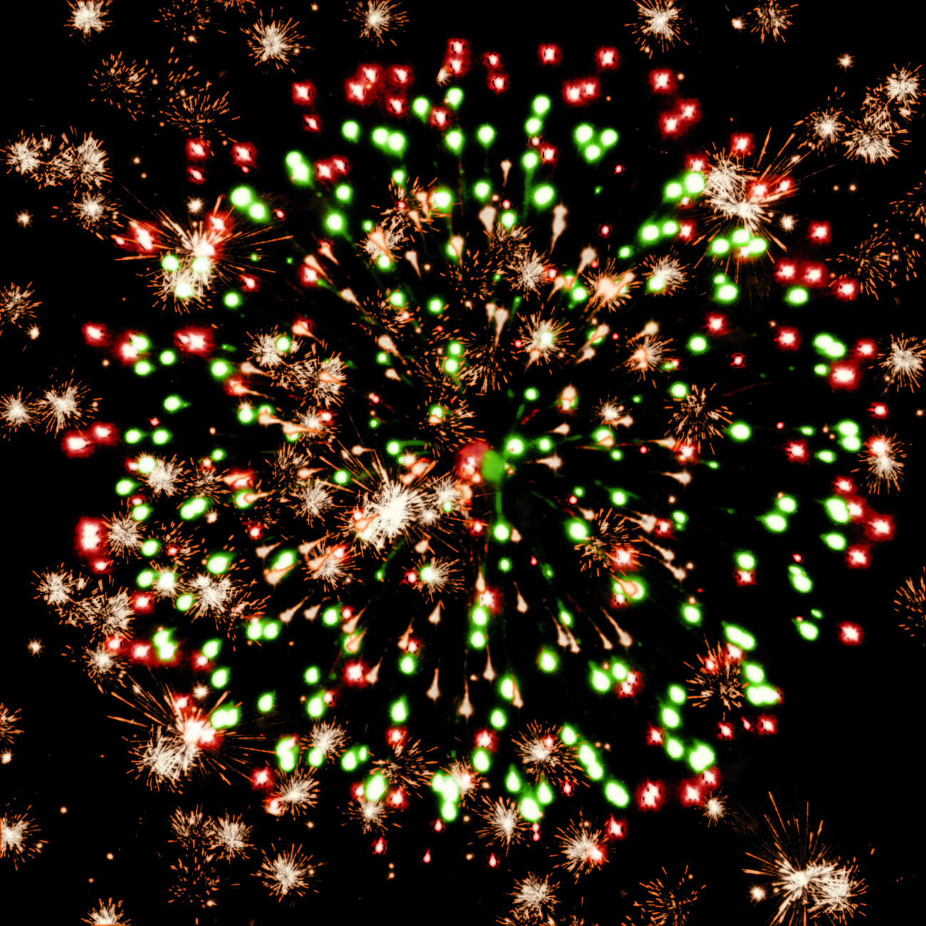 1-2. красных, зелёных и золотых мерцающих, трещащих огней;