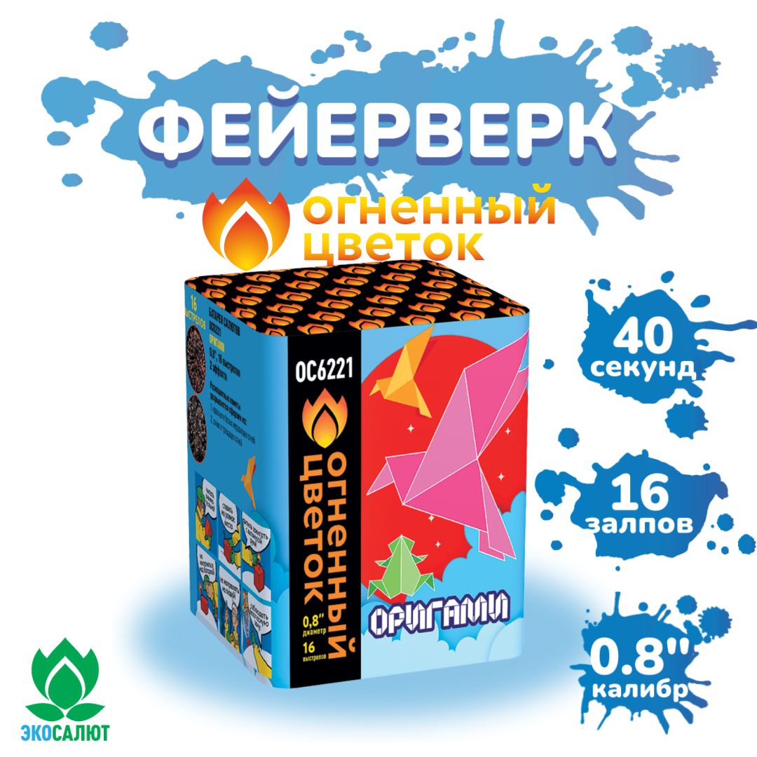 Батарея салютов от "Русской пиротехники", которая воплощает в себе всю грацию и изящество оригами, японского искусства складывания бумаги. Ее взрывы создают удивительные образы, напоминающие сложенные фигурки из бумаги, медленно разворачивающиеся в воздухе.Этот фейерверк идеально подходит для любителей оригами и японской культуры. Он может стать особым украшением на ярмарках, выставках или просто для создания атмосферы изящества и красоты.Эффекты (изображены на картинке):Разноцветные кометы разрываются сферами из: