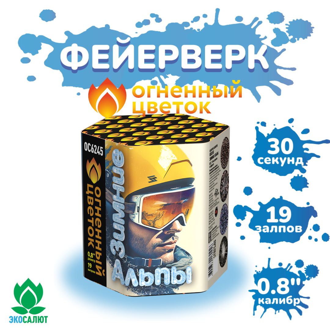 Батарея салютов, которая переносит зрителей в волшебный мир заснеженных гор Альп. Ее взрывы создают потрясающие образы горных вершин, засыпанных снегом, и ледников, сверкающих на солнце.Настоящее произведение искусства от "Русской пиротехники", позволяющее ощутить красоту и величие Альп. Вспышки огня создают реалистичные иллюзии снежных склонов, алмазных снежинок и заснеженных хвойных лесов, захватывая воображение и перенося Вас в удивительный мир гор.Насладитесь ярким и незабываемым пиротехническим шоу!Эффекты (изображены на картинке):Разноцветные кометы разрываются сферами из:
