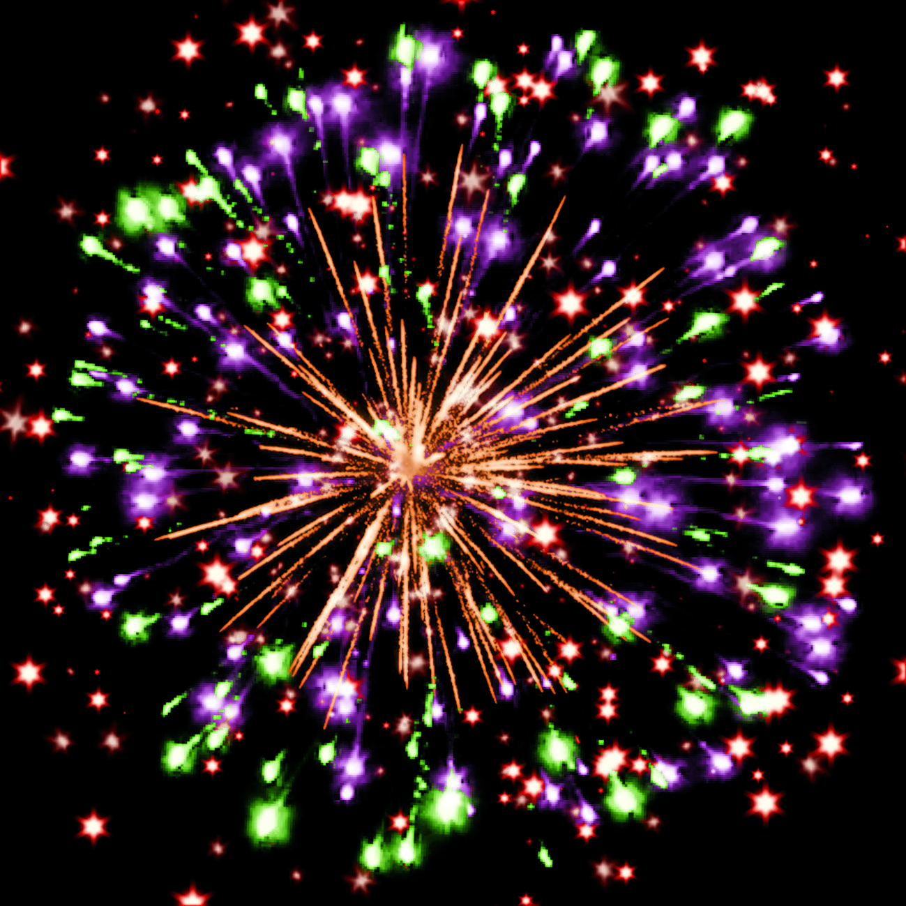 1. золотых форсов с красными огнями на концах и множества трещащих сфер;