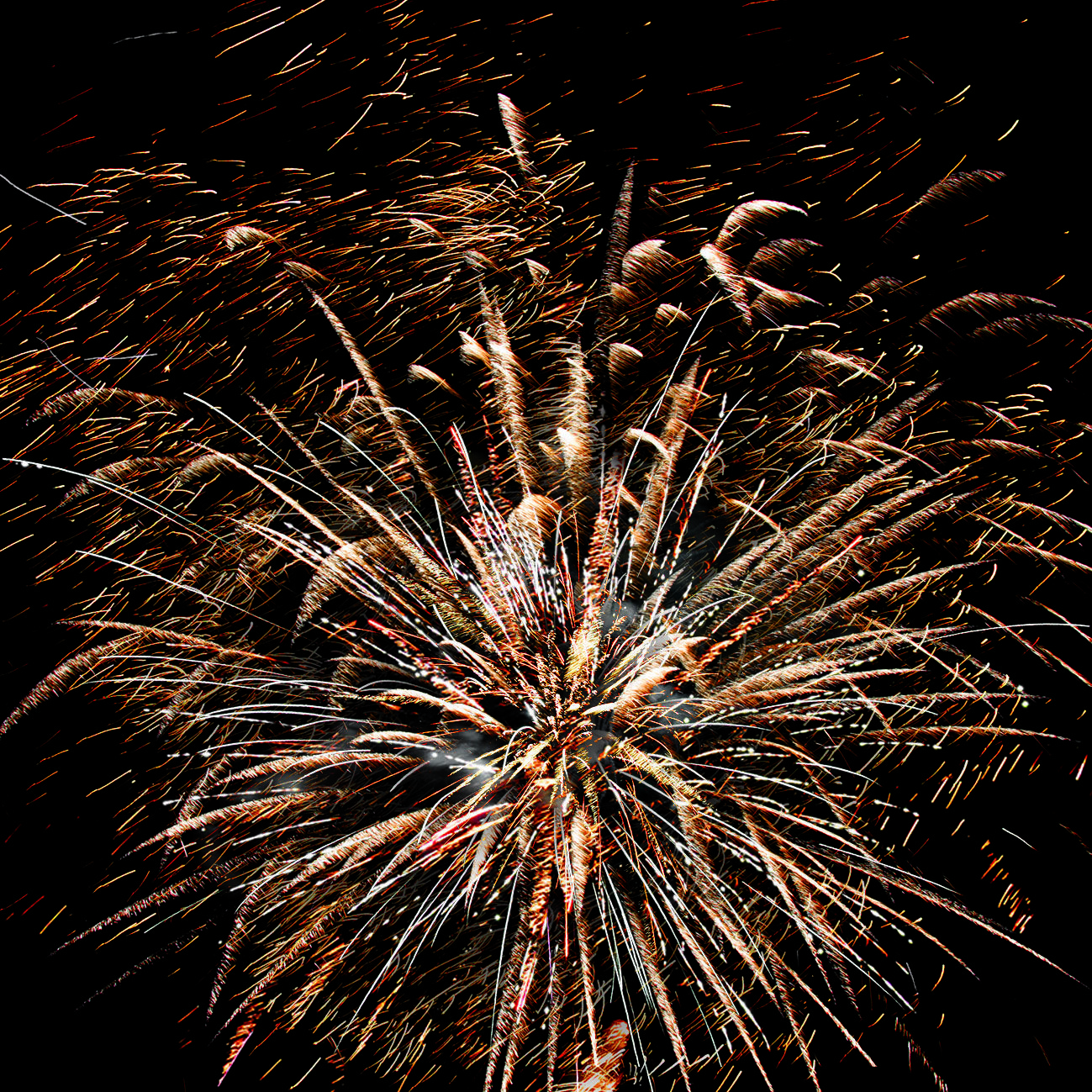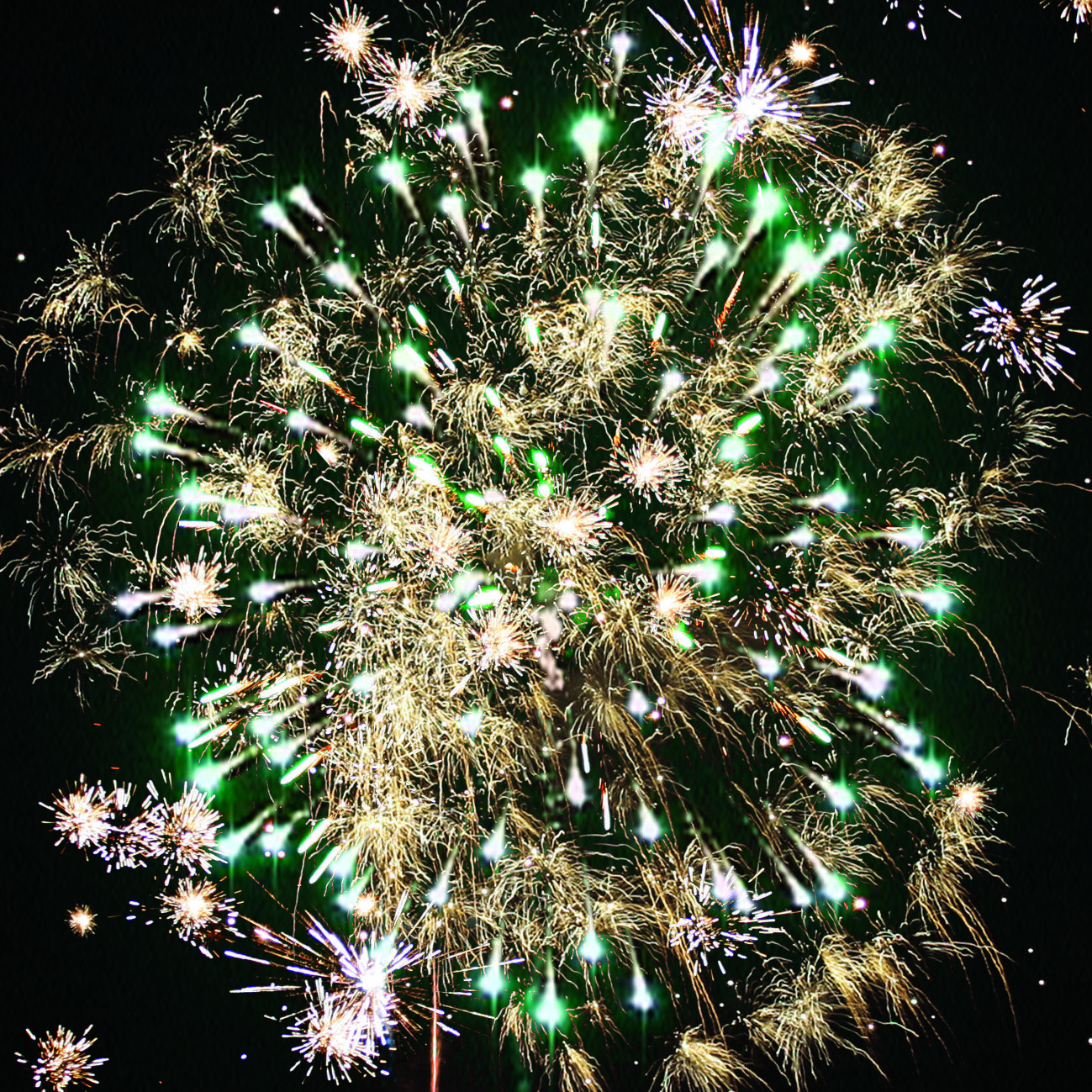 2-3. золотых трещащих разлетающихся искр и красных, зелёных огней с форсами;