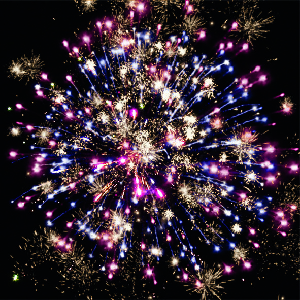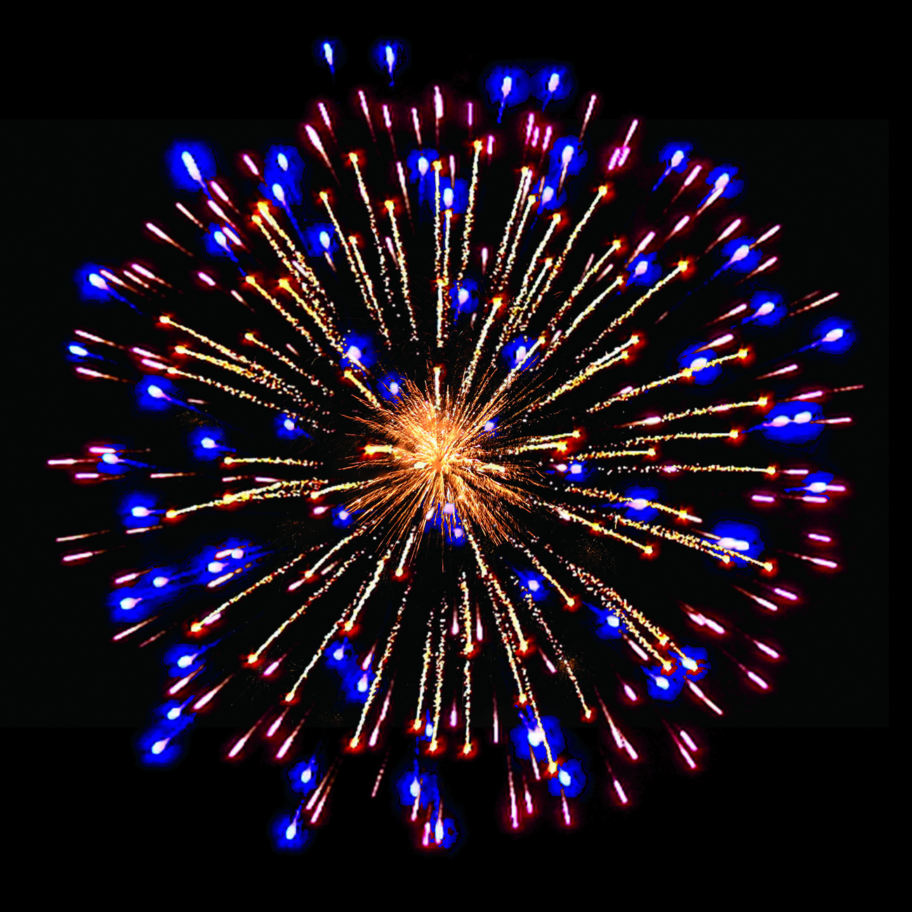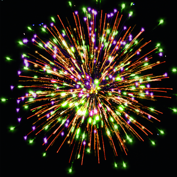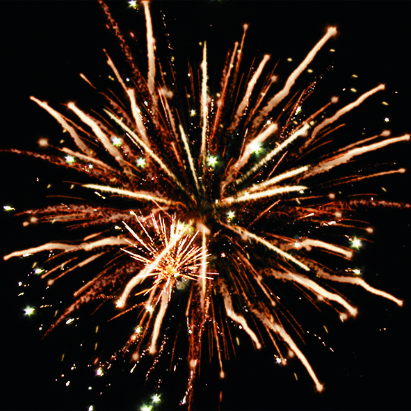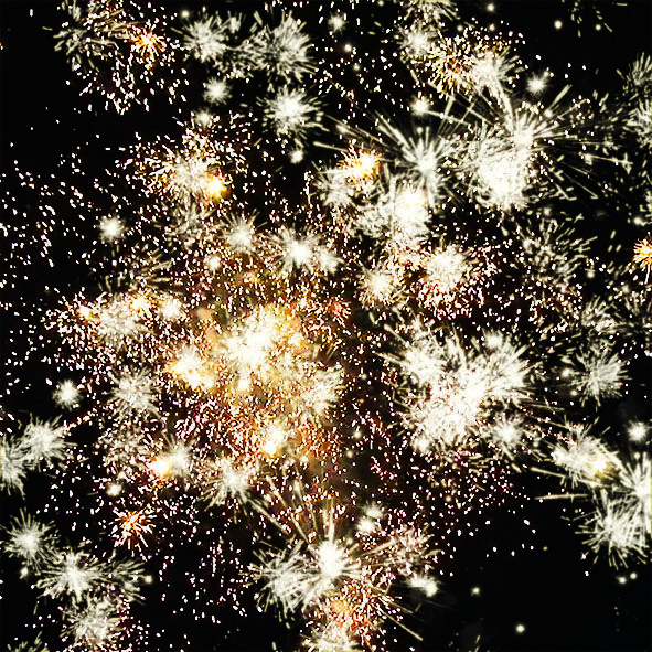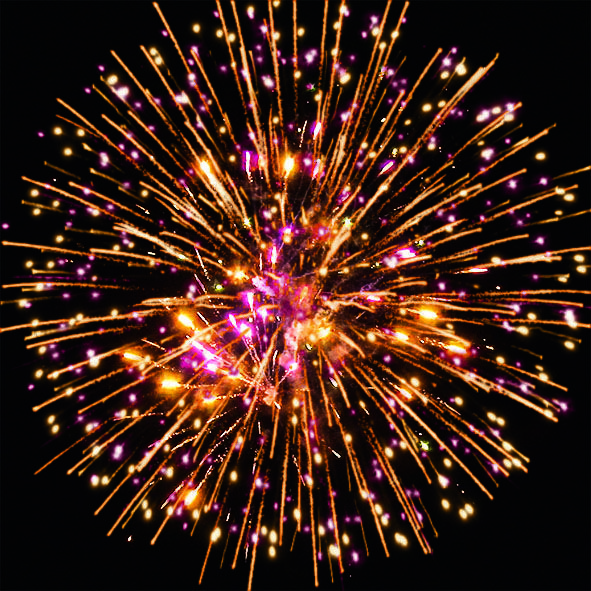 15. золотых искристых мерцающих форсов и разлетающихся трещащих искр (залп).