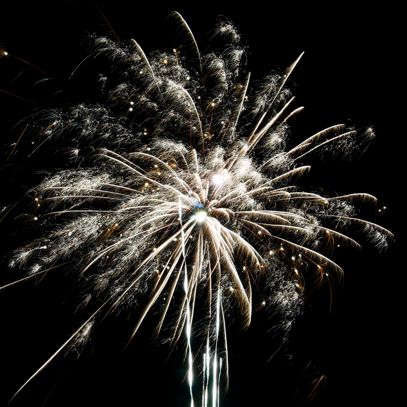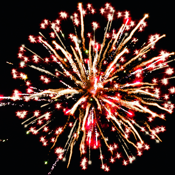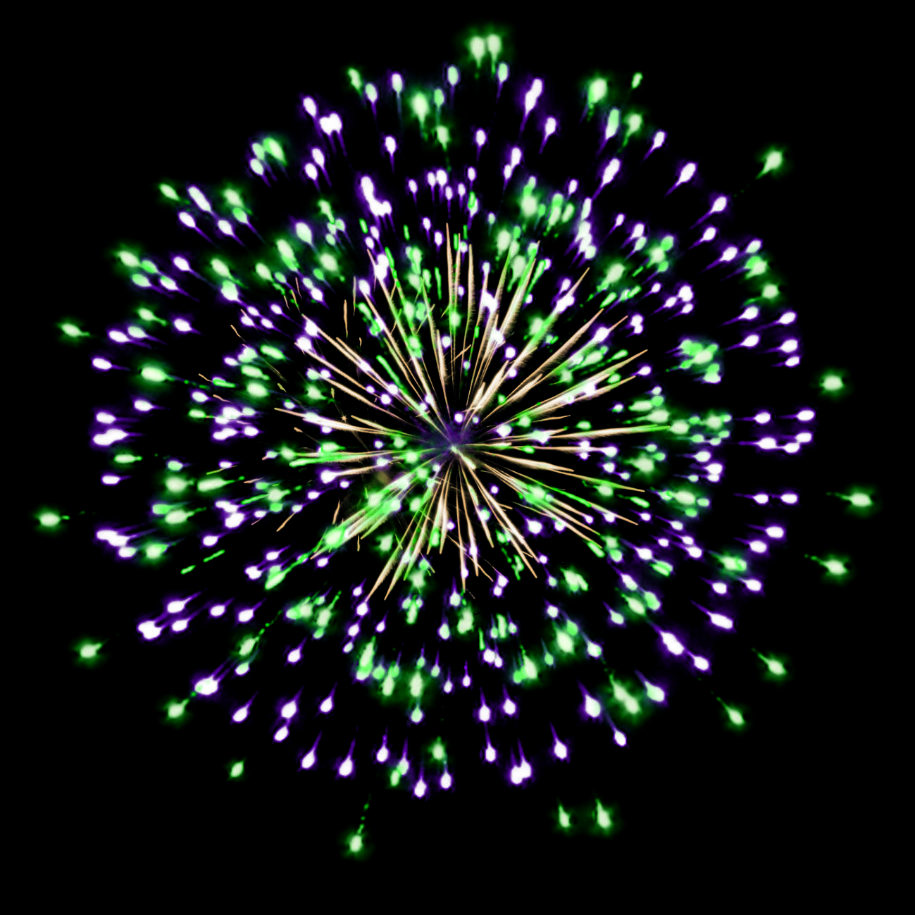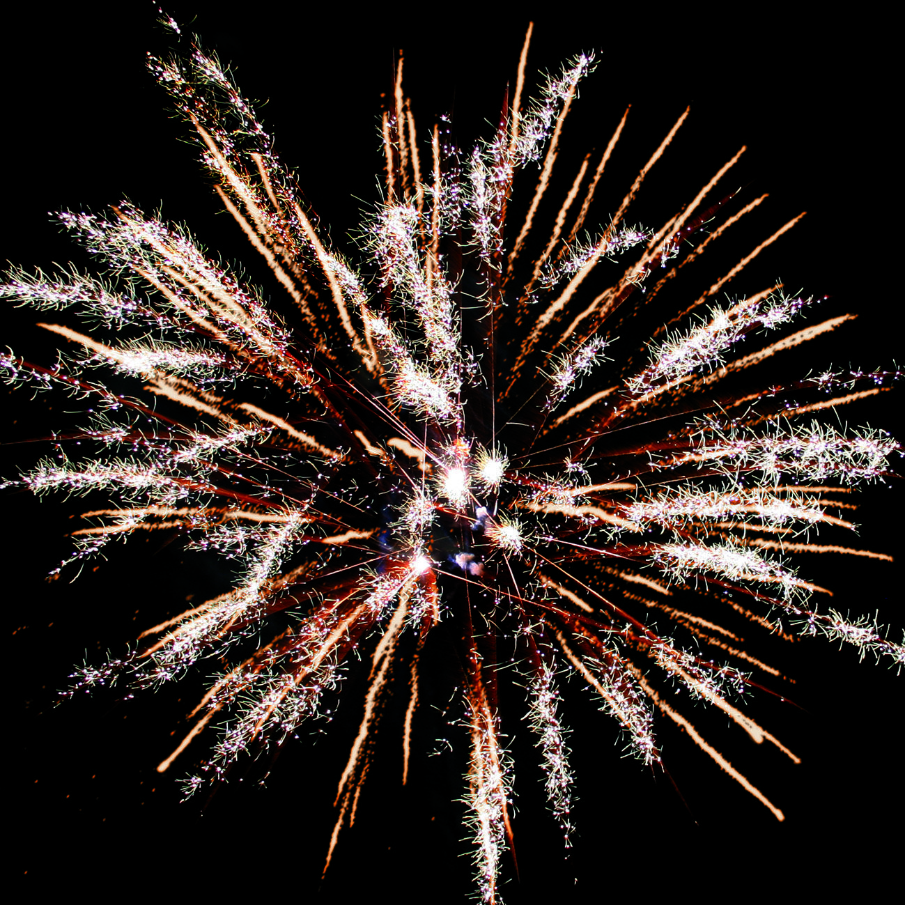 15. золотых искристых мерцающих форсов и разлетающихся трещащих искр (залп).