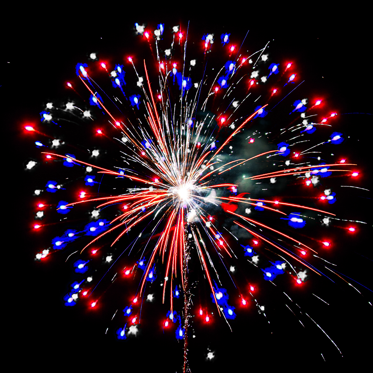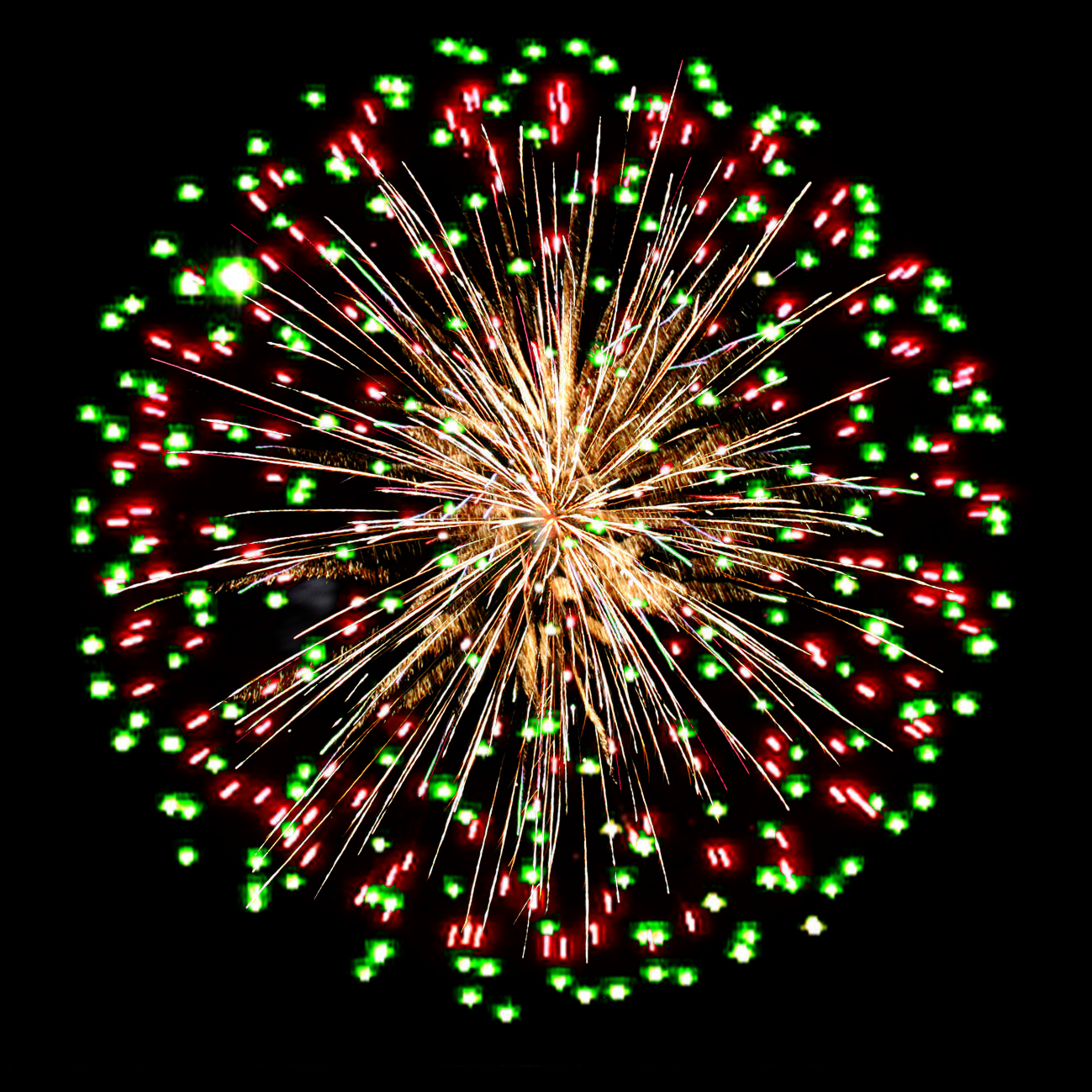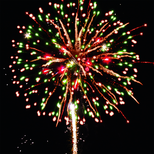 13. красных, зелёных, синих огней и разлетающихся трещащих искр;