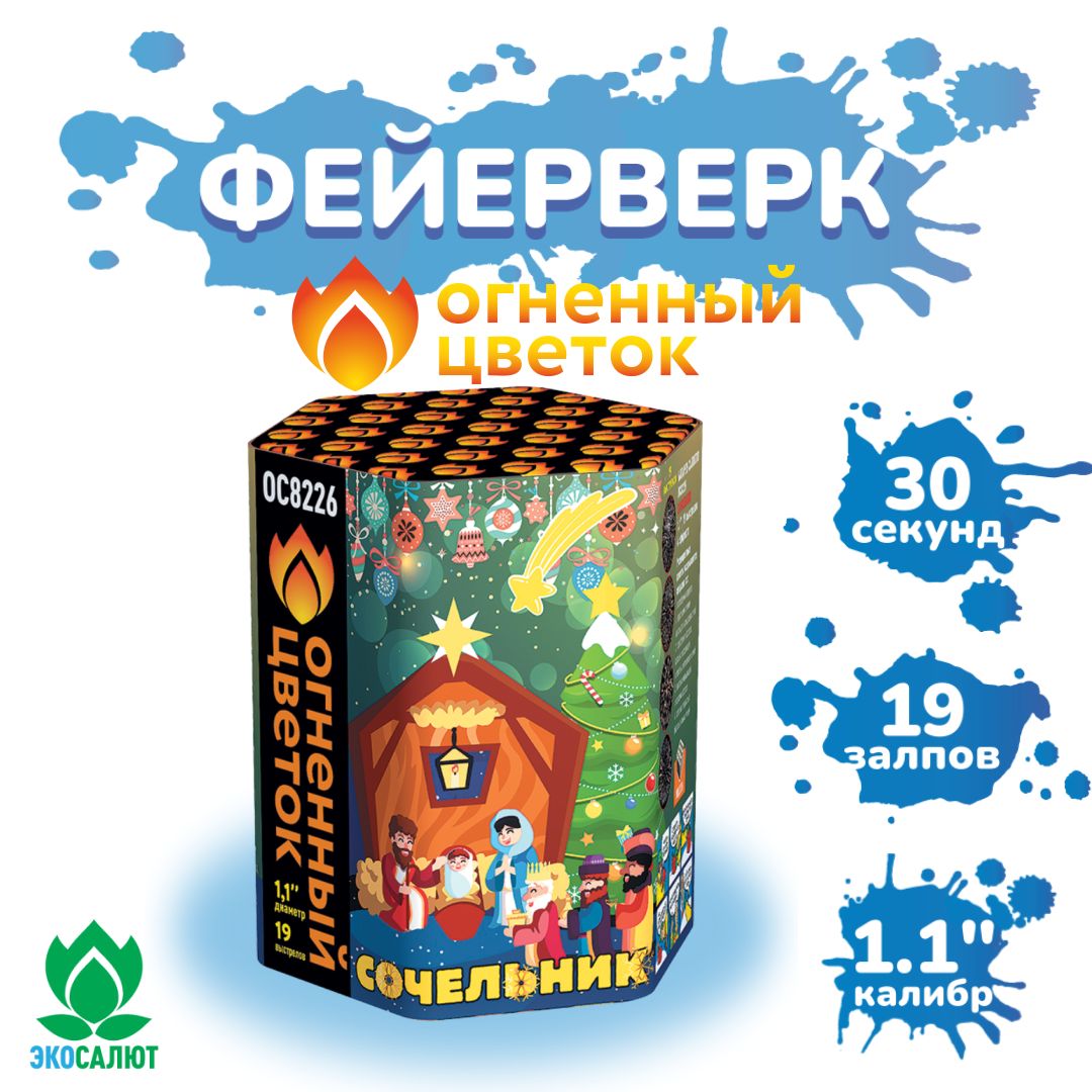 Церковный праздник, справляется в честь наступающего Рождества. С Великим праздником связано много традиций, примет и поверий.В России есть два дня, содержащих в своем названии красивое слово "Сочельник": 6 января - Рождественский сочельник и 18 января - сочельник Крещенский.Батарею салютов Сочельник от "Русской пиротехники" можно запускать и в Рождество и в Крещение! Легкий, красивый салют очень подойдет на зимние праздники!Эффекты (изображены на картинке):Разноцветные кометы разрываются сферами из: