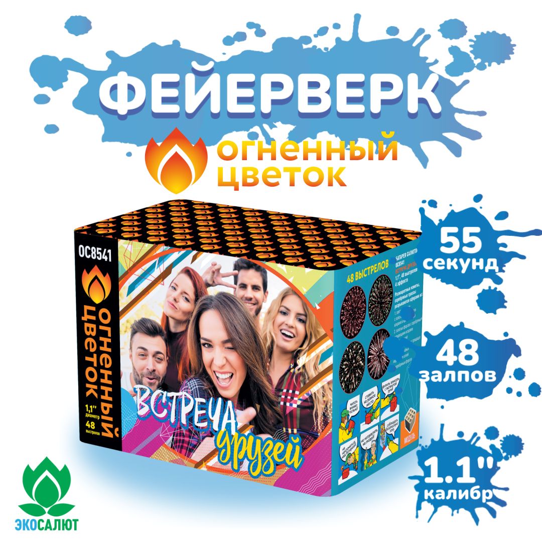 Встреча старых и новых друзей это всегда знаменательное событие! А что может быть прекрасней, ярче и подходяще для этого мероприятия, чем потрясающий фейерверк?В ночном небе развернулась волшебная симфония огней и красок, когда наступила долгожданная "Встреча друзей" от "Русской пиротехники". Эта батарея салютов превратила темное небо в настоящий художественный полотно, наполненное яркими мгновениями радости и восторга.Первые звезды вспыхнули на небосводе, словно приглашая всех присутствующих на эту незабываемую встречу. Изумительные фейерверки, словно зажженные светлячками, начали танцевать в воздухе, создавая уникальные фигуры и узоры. Они словно раскрашивали ночное небо яркими искрами, олицетворяя дружбу и радость встречи!Эффекты (изображены на картинке):Разноцветные кометы, серебряные трассы разрываются сферами из: