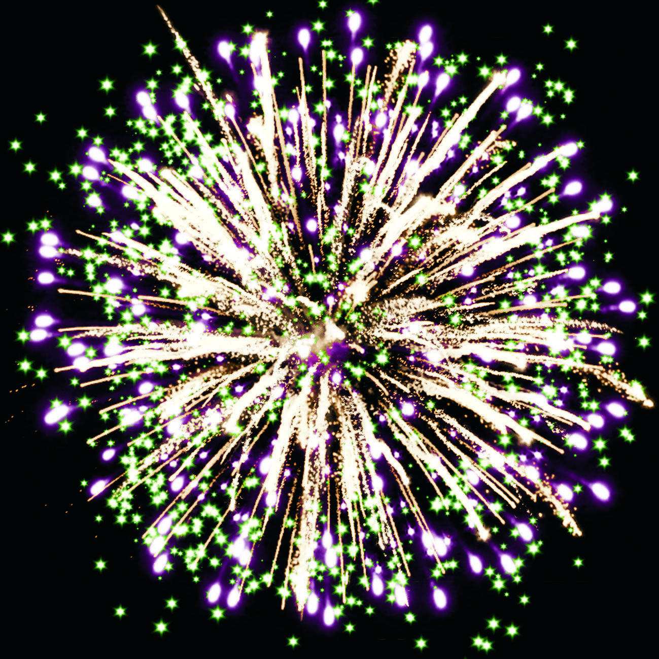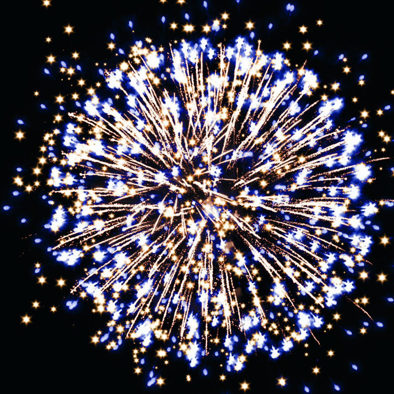 6. золотых форсов с золотыми мерцающими искрами и синих огней.