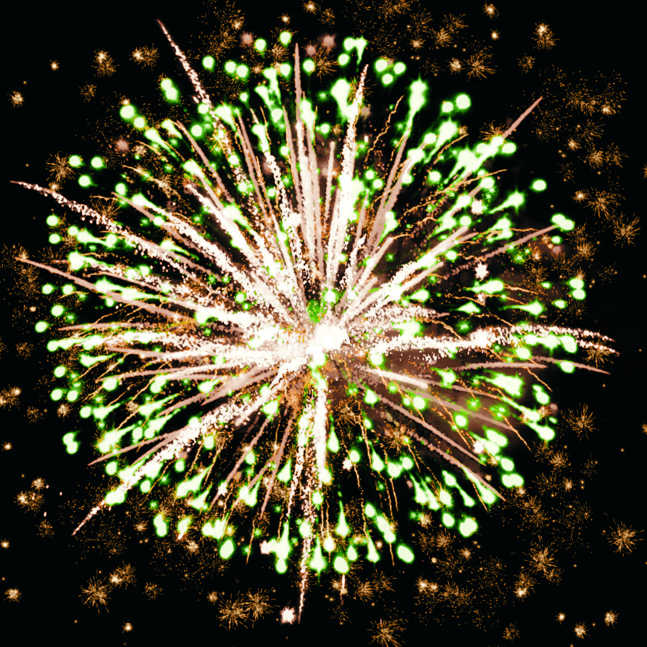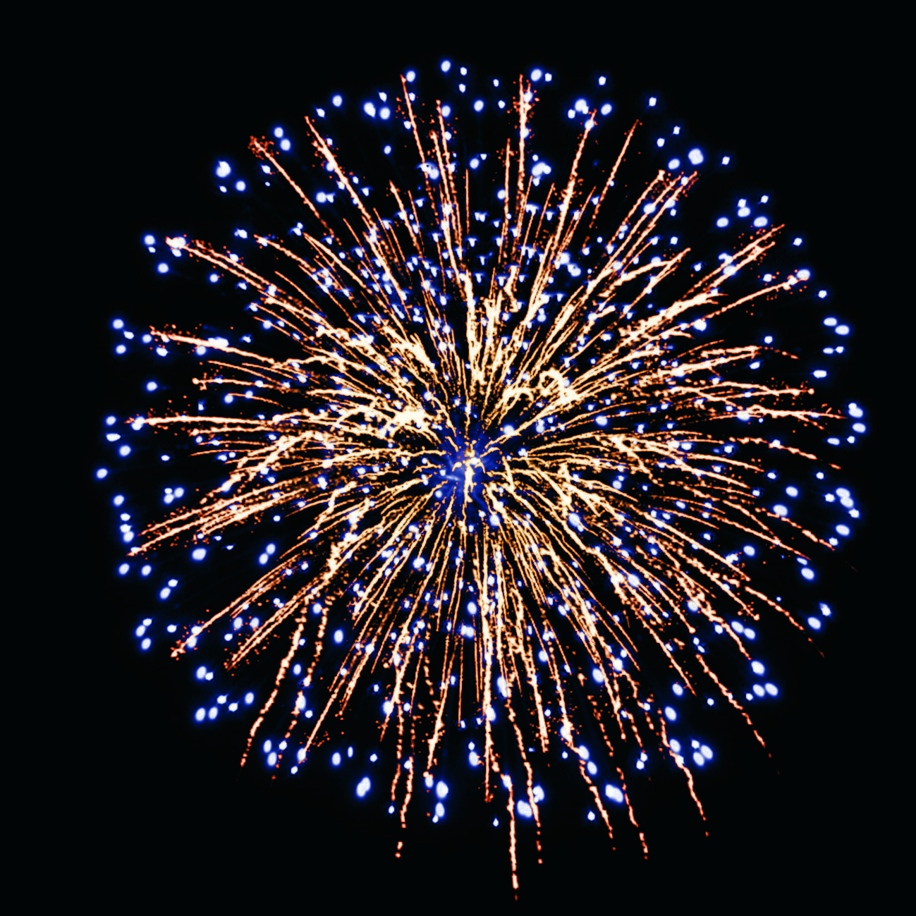 5. золотых форсов с золотыми мерцающими искрами и синих огней;