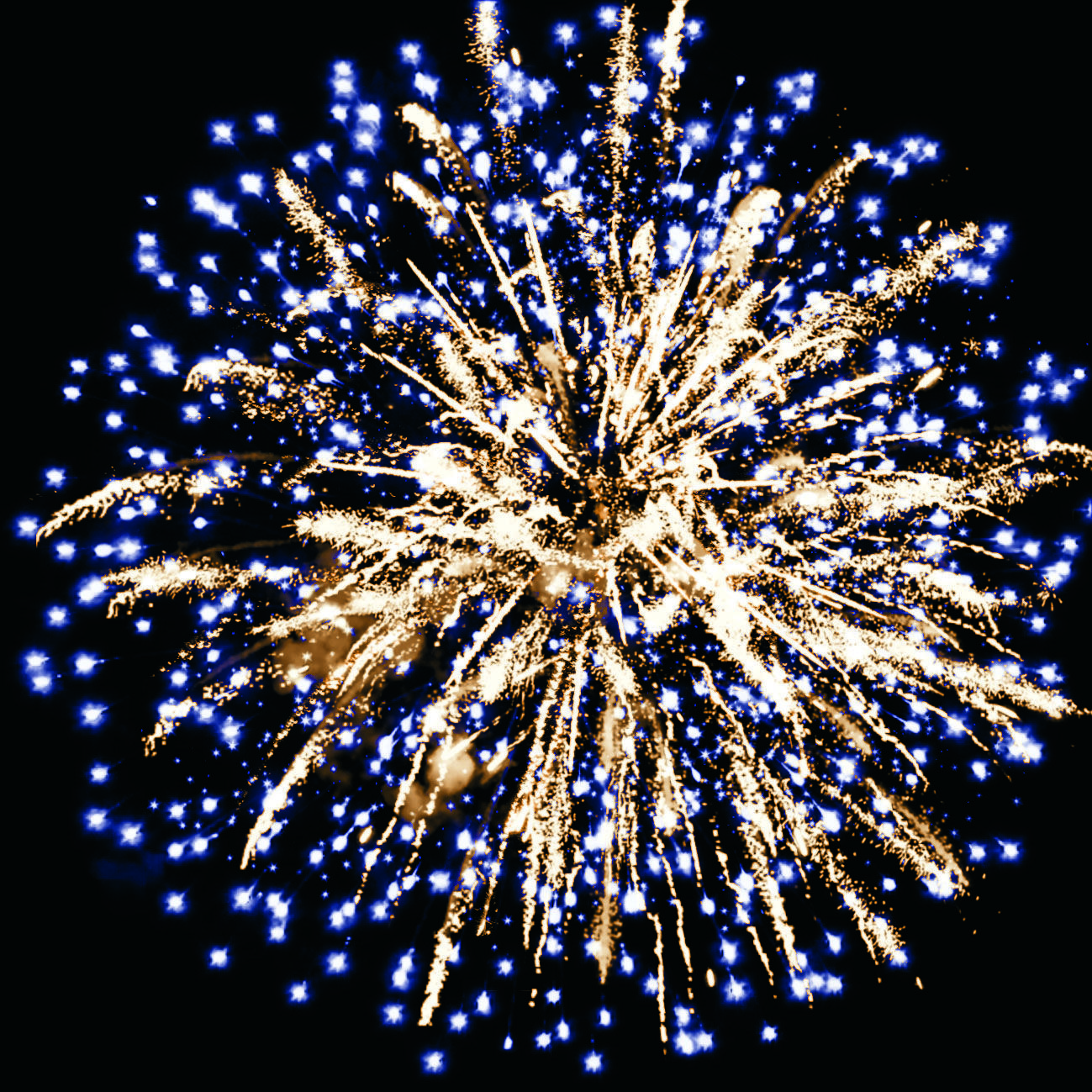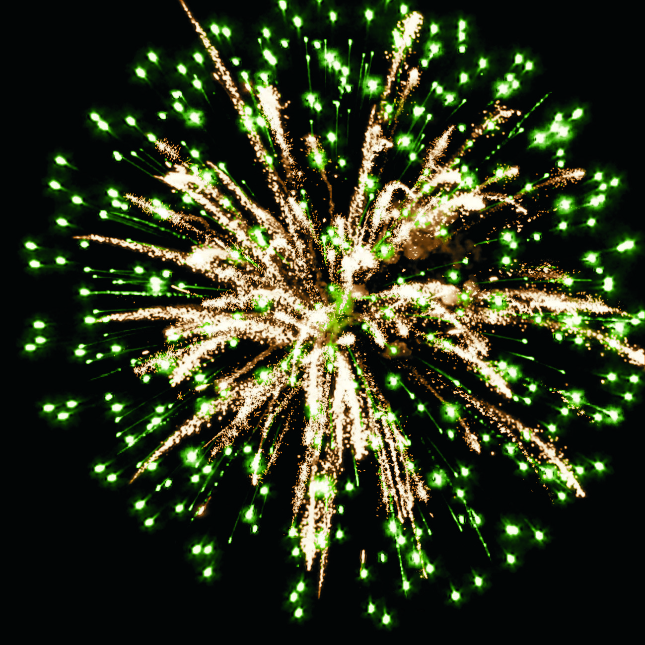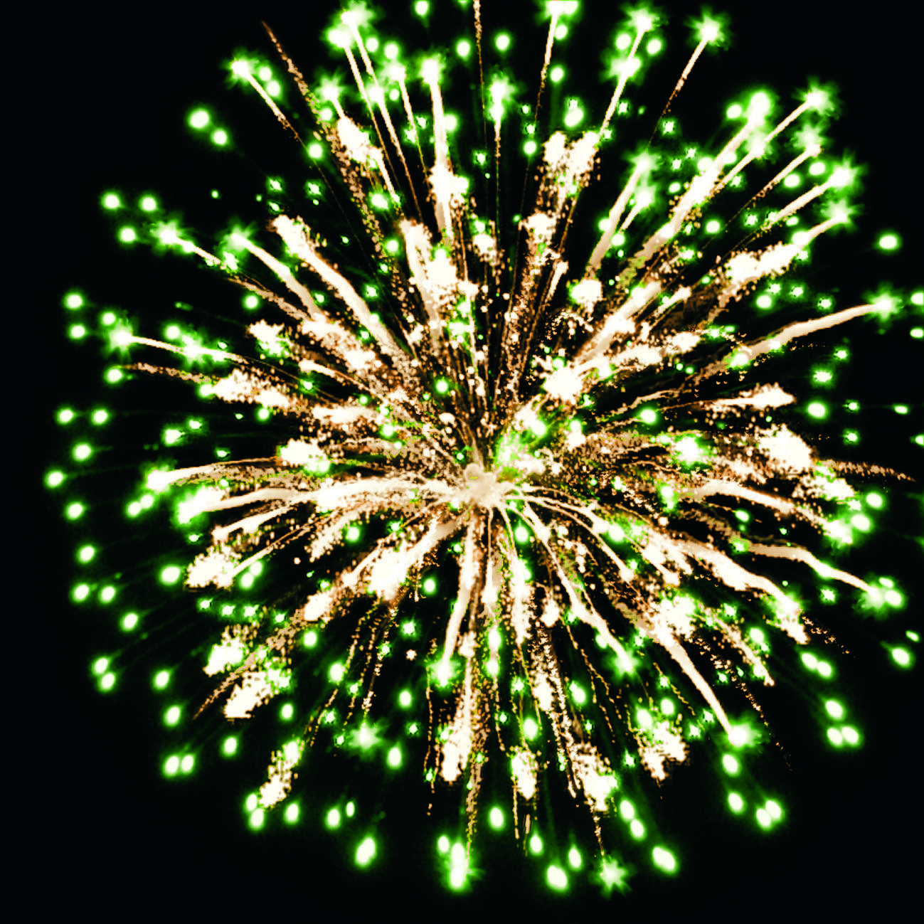 5-7. золотых трещащих форсов и красных, зелёных, синих огней.