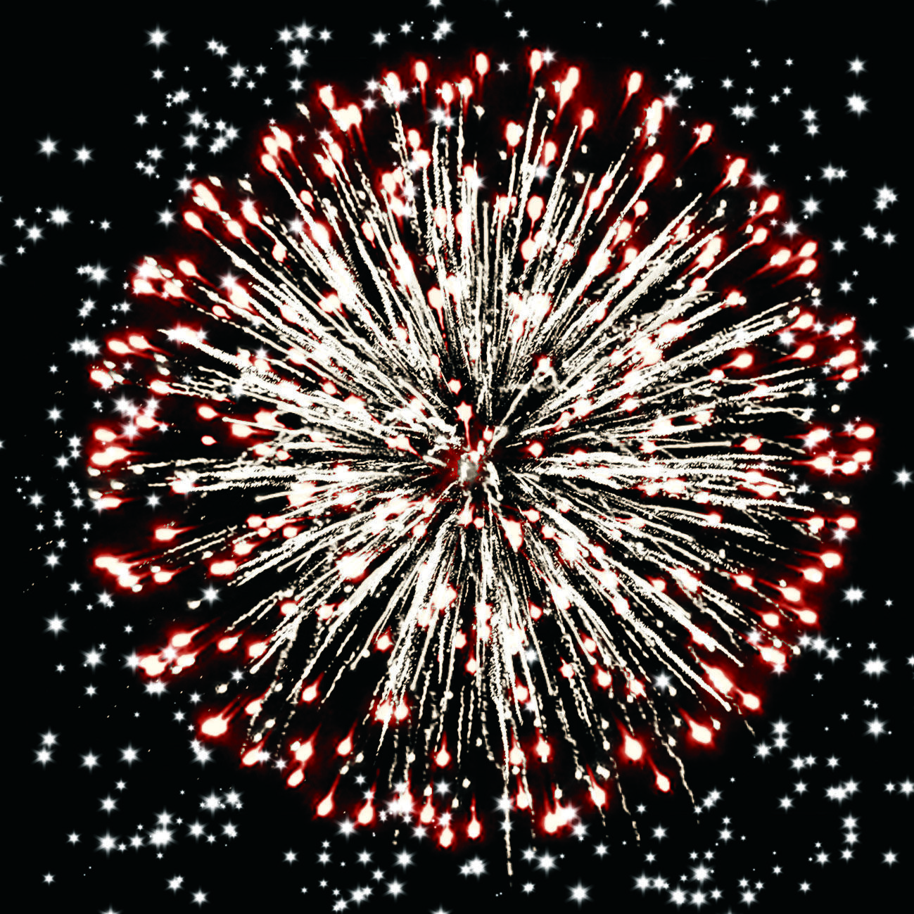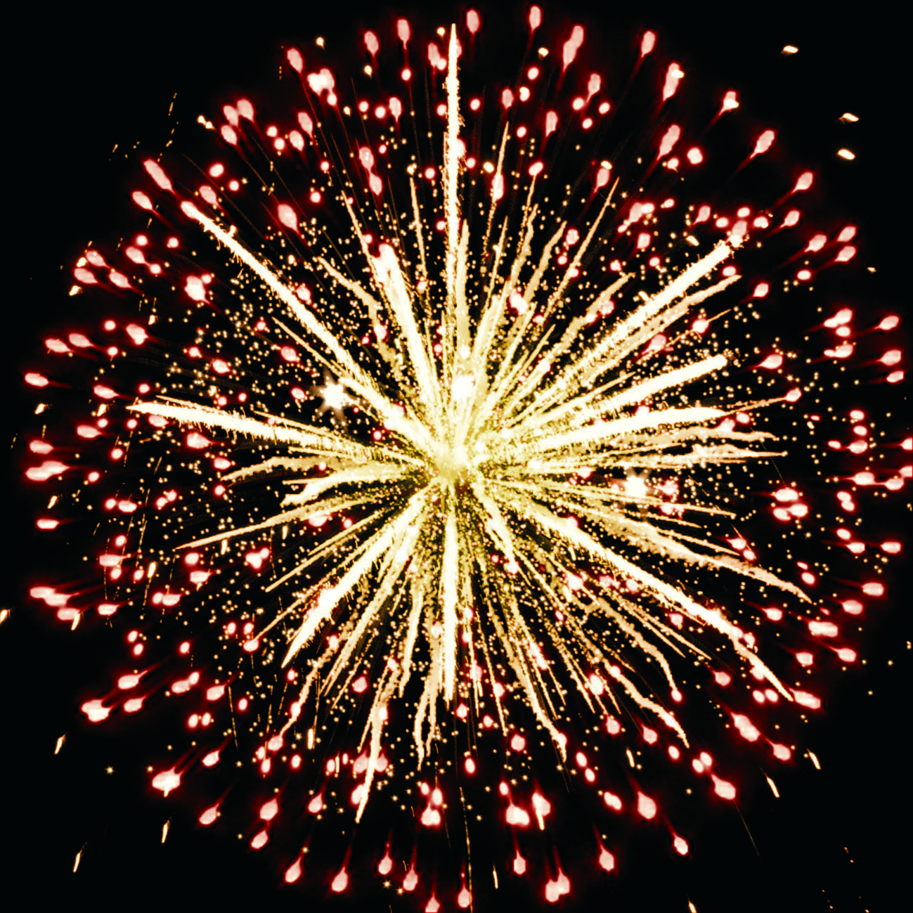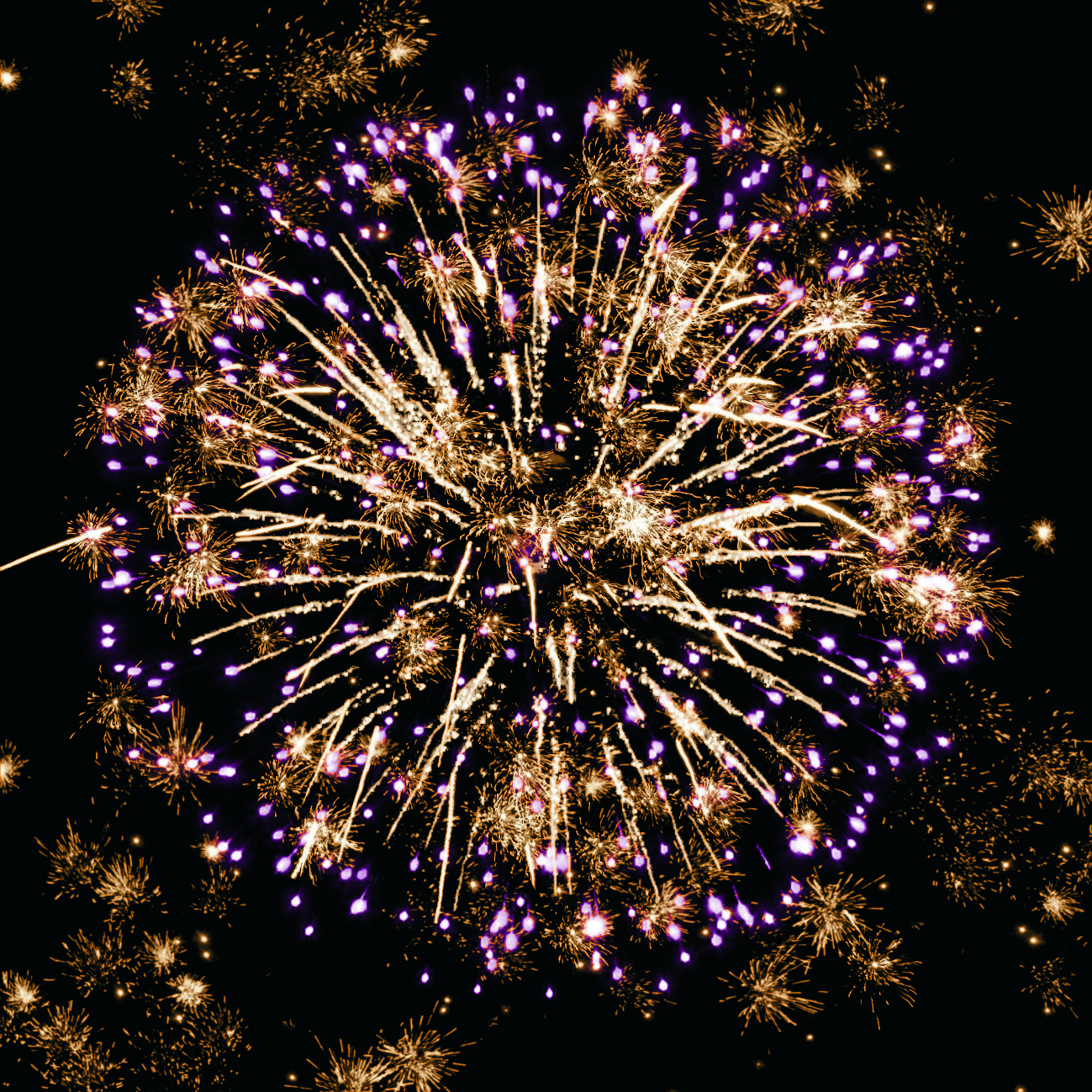 5-7. золотых трещащих форсов и красных, зелёных, синих огней.
