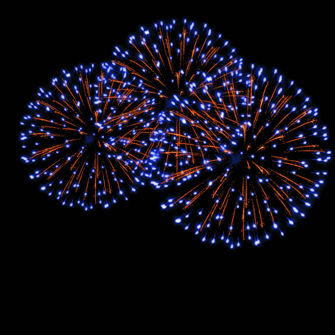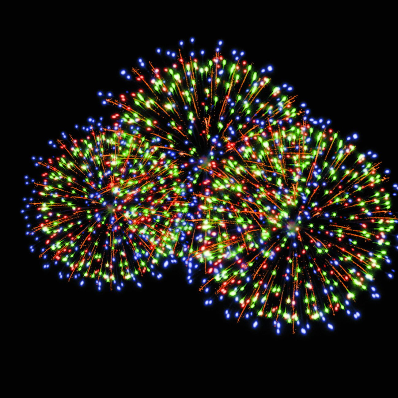 52-53. Веер. Сферы из золотых форсов и оранжевых, красных, зелёных, синих огней.