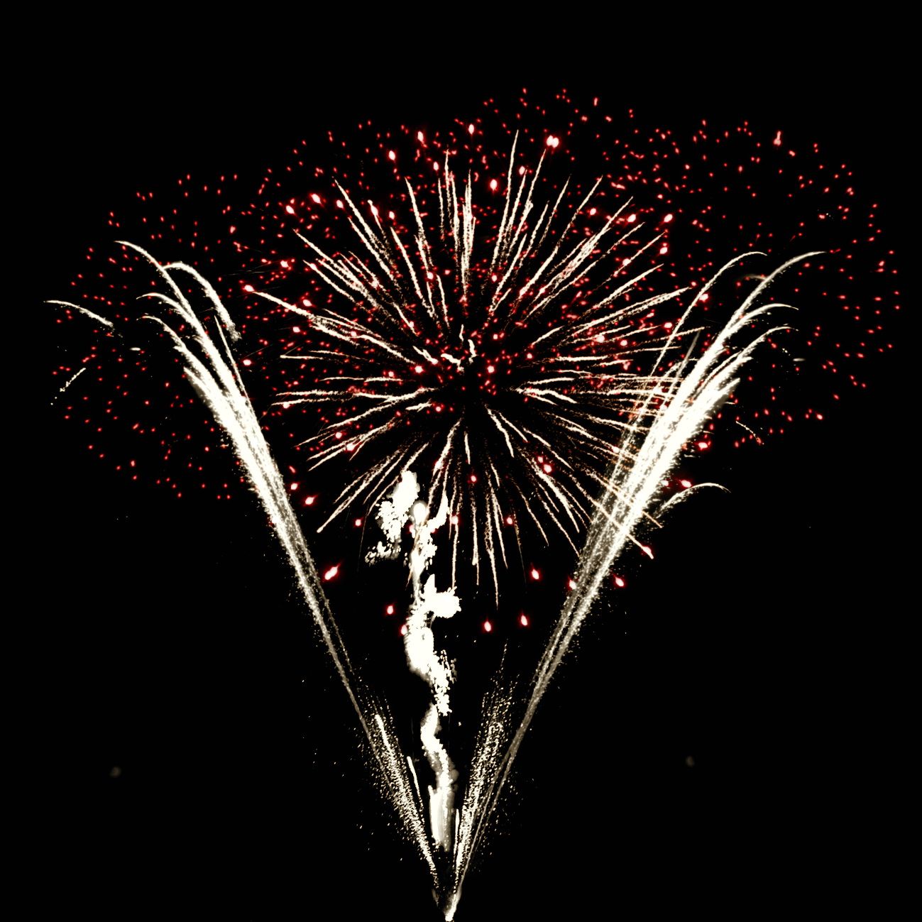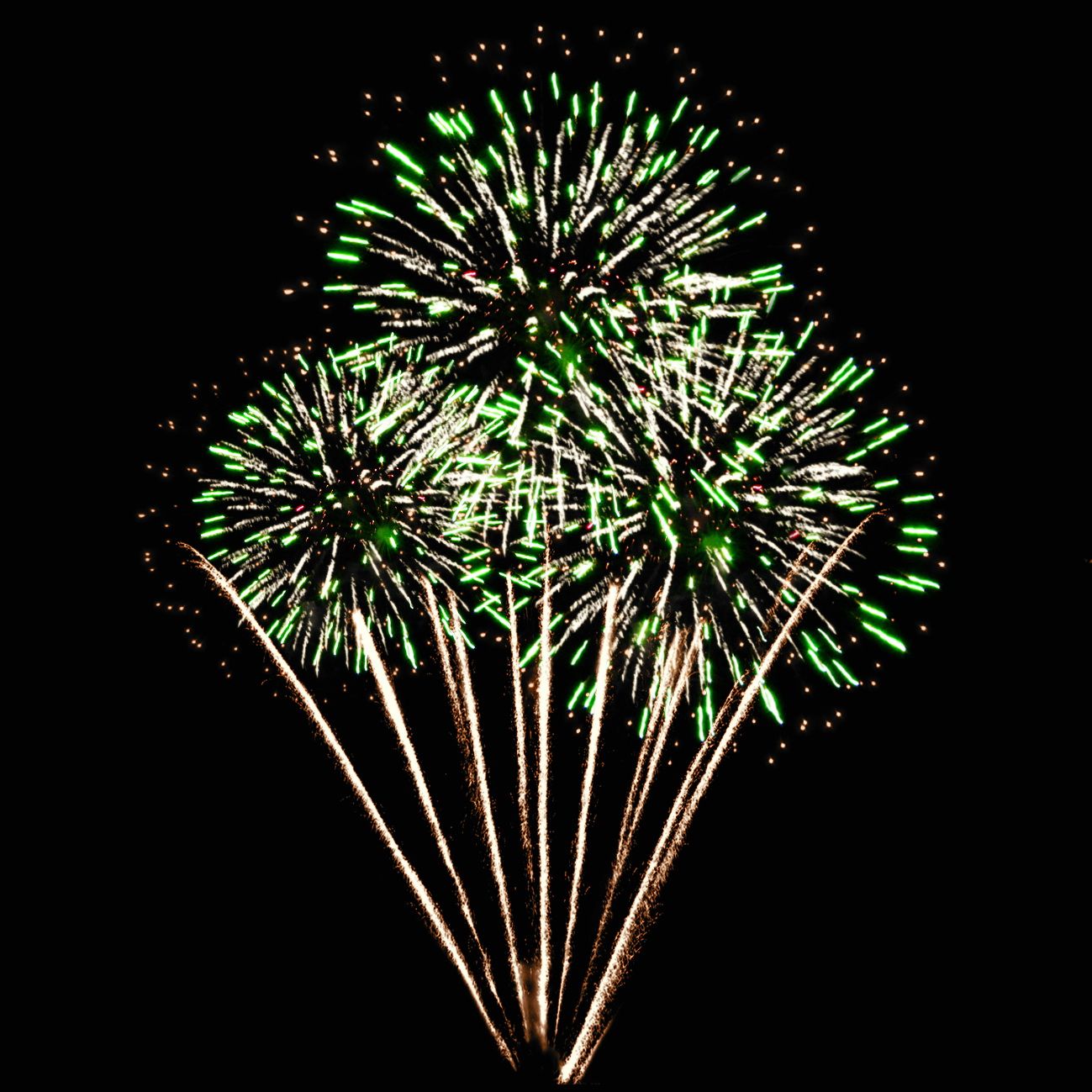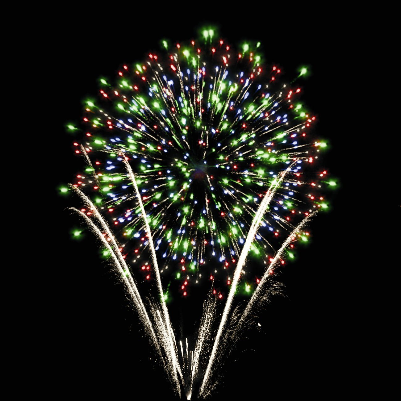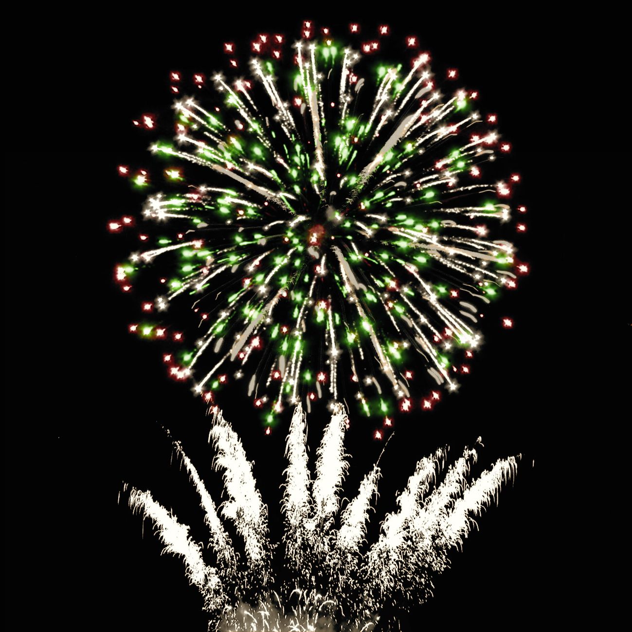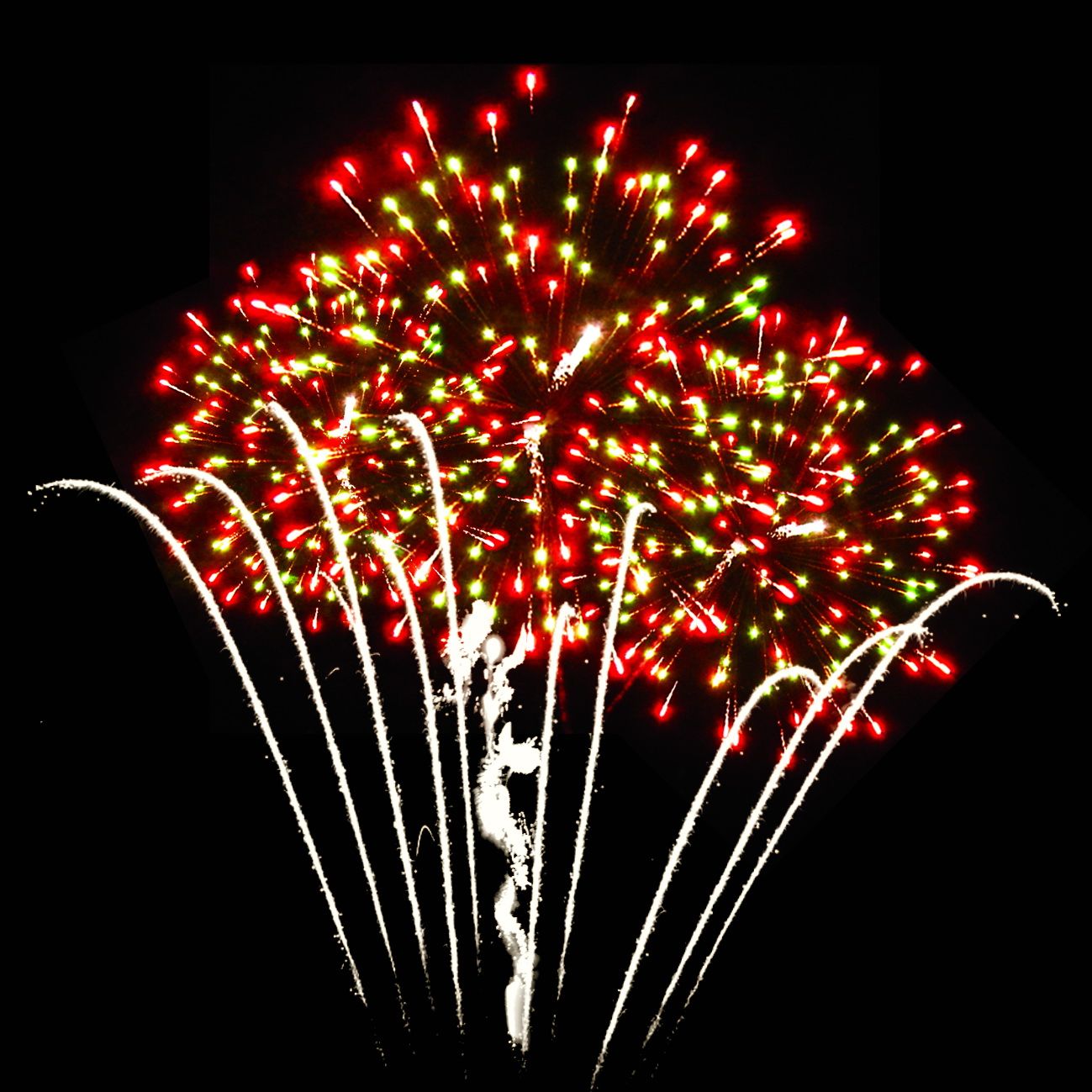 18-21. серебряных форсов с красными, зелёными огнями на концах, золотых мерцающих огней, множества трещащих разлетающихся серебряных огней;