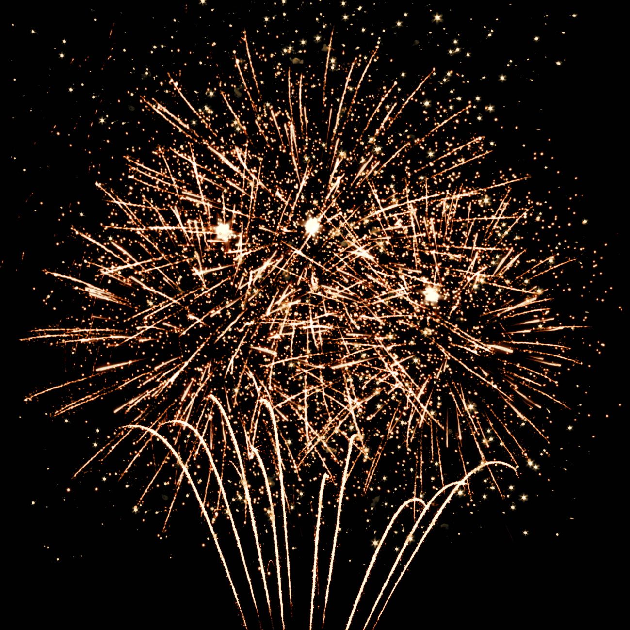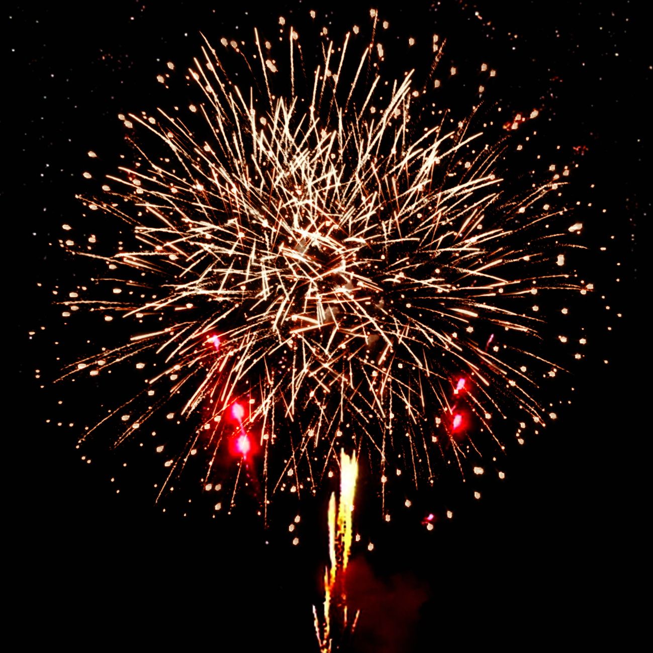 50-51. Веер. Золотые трассы с красными, серебряными искрами, треском.
