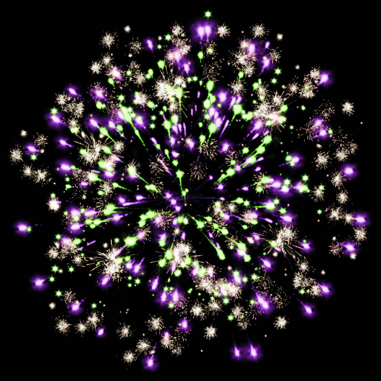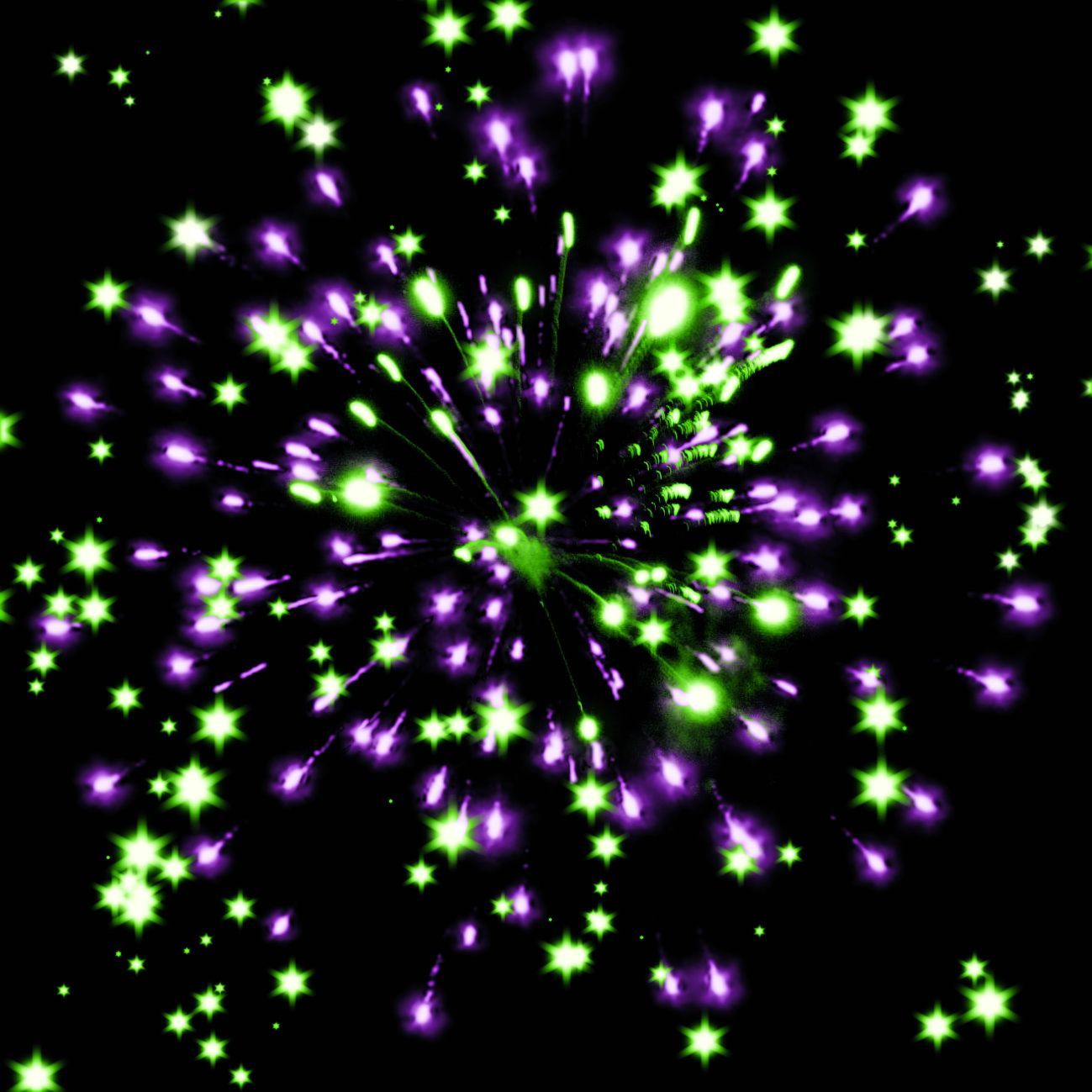 2-3. фиолетовых, зелёных и мерцающих зелёных, трещащих огней;