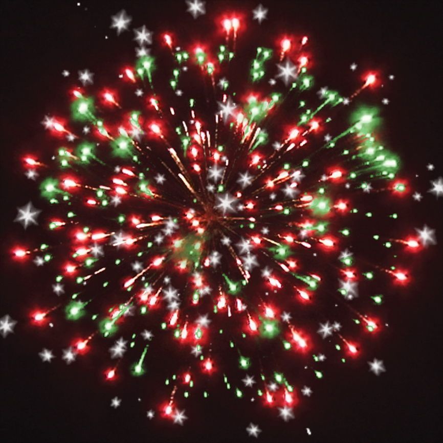 1-2. красных, зелёных и белых мерцающих, трещащих огней;