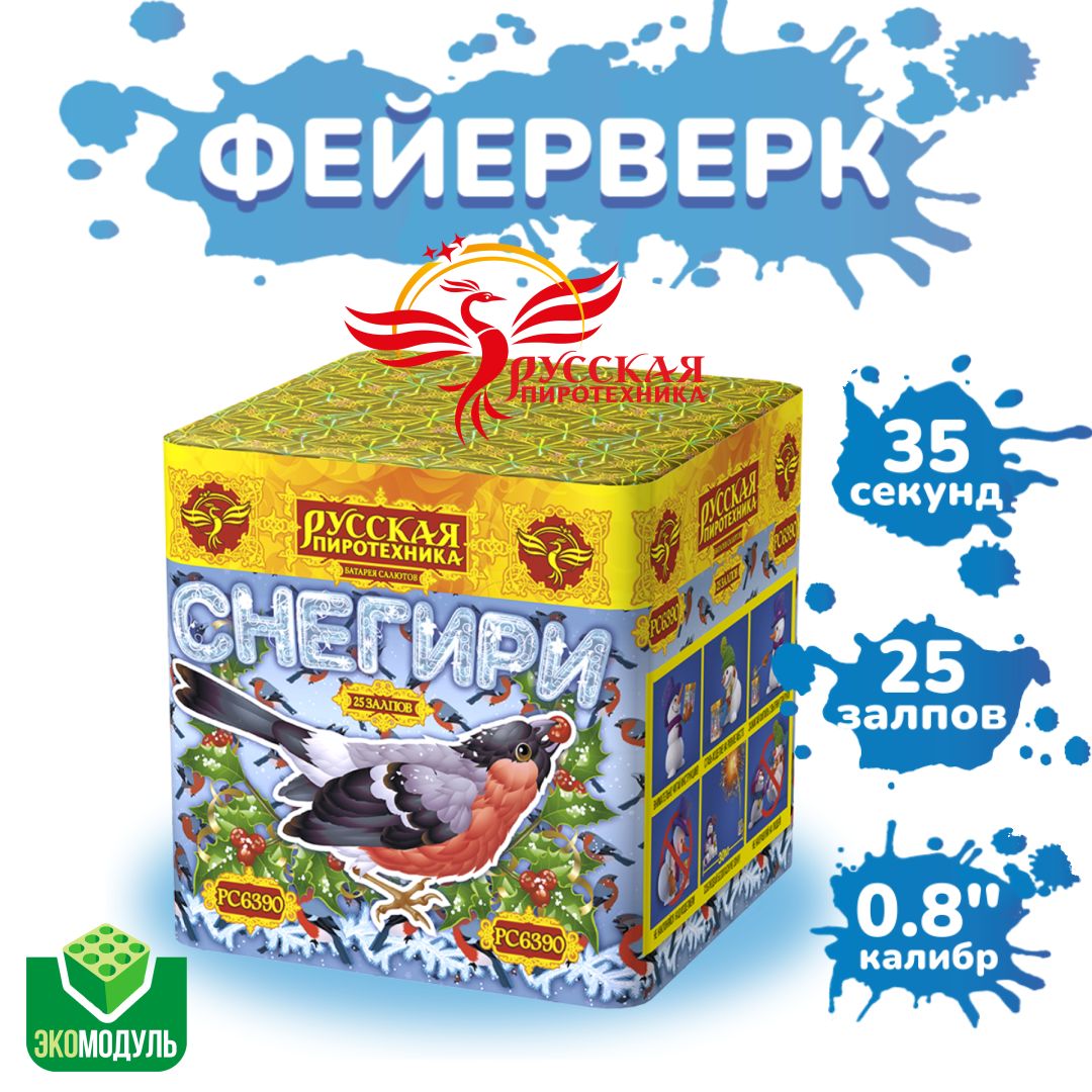 Снегирь – символ зимы и Рождества. В России он однозначно ассоциируется с наступлением зимы и холодов, когда птица перебирается поближе к жилью человека. Летом, как и синицы, снегири живут в лесах и их не видно среди листвы, они как бы растворяются в прочих красках лета. Зимой же красногрудые птички очень заметны.Снегирь является символом жизни и радости. Эта символика птицы также восходит к красному цвету в окраске, поскольку красный цвет ассоциируется с жизненной силой и жизнью активной и насыщенной.Батарея салютов "Снегири" от "Русской пиротехники" станет Вашим символом жизни и радости! Великолепная батарея салютов, которая принесет непревзойденную красоту и волшебство на любое мероприятие. Ее яркие искры, напоминающие падающий снег, создадут атмосферу зимней сказки и заставят гостей восхищаться. Запустив этот чудесный зимний фейерверк праздничное настроение Вам гарантируется!Эффекты (изображены на картинке):Разноцветные кометы, искристые трассы разрываются сферами из:
