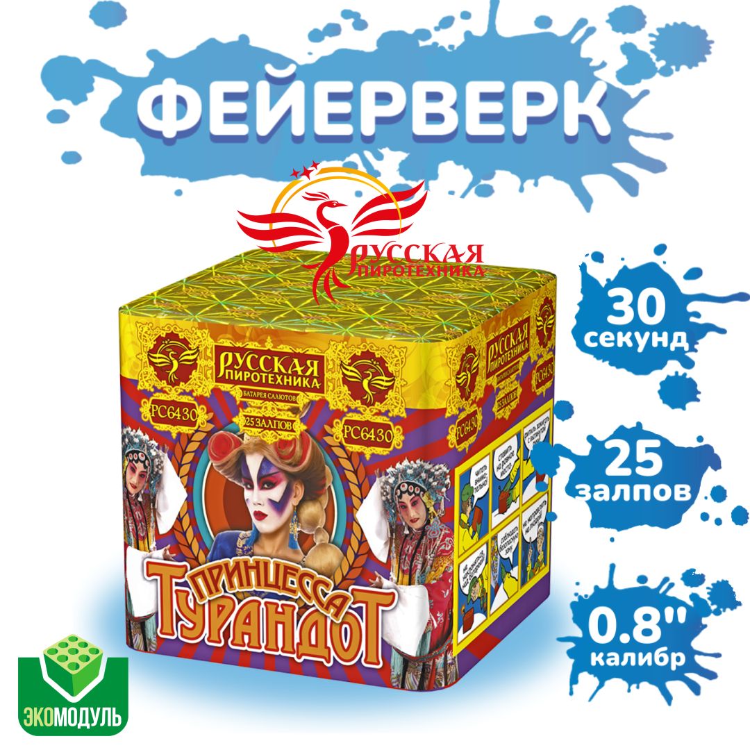 "Принцесса Турандот" по сказке Карло Гоцци стала последним спектаклем Евгения Вахтангова и одним из самых ярких событий культурной жизни Москвы 1922 года. Этот спектакль разделил русский театр на до и после: его отголоски позже будут звучать в работах многих режиссеров и драматургов.Турандот, дочь китайского императора, не желает выходить замуж. Она развлекается тем, что велит казнить незадачливых женихов, которые не проходят проверку. Принцесса загадывает им три сложные загадки, кто не угадает — может прощаться с жизнью.Батарея салютов «Принцесса Турандот» от "Русской пиротехники" напротив, жизнь продлевает или даже начинает новую! Этот салют станет незаменимым украшением любого праздника, будь то свадьба, день рождения или другое важное мероприятие!Насладитесь красочным и незабываемым пиротехническим шоу!Эффекты (изображены на картинке):Золотые трещащие искристые трассы разрываются сферами из: