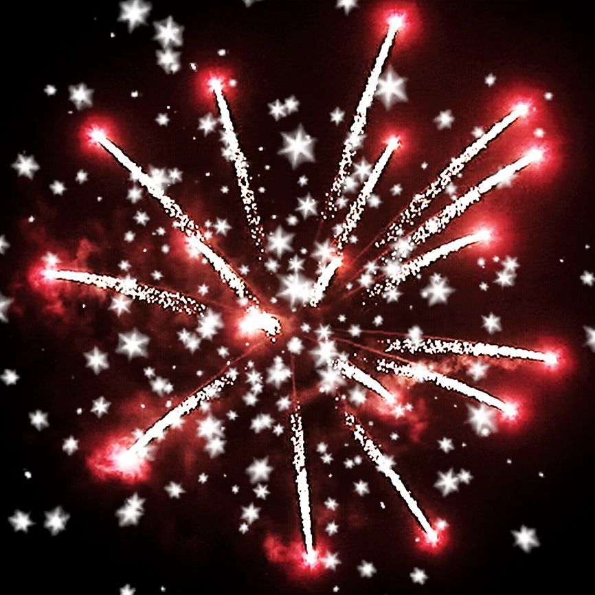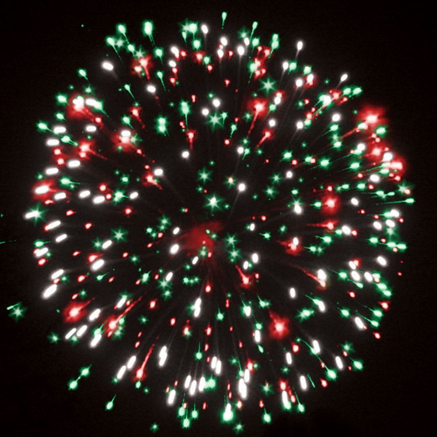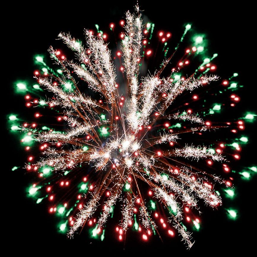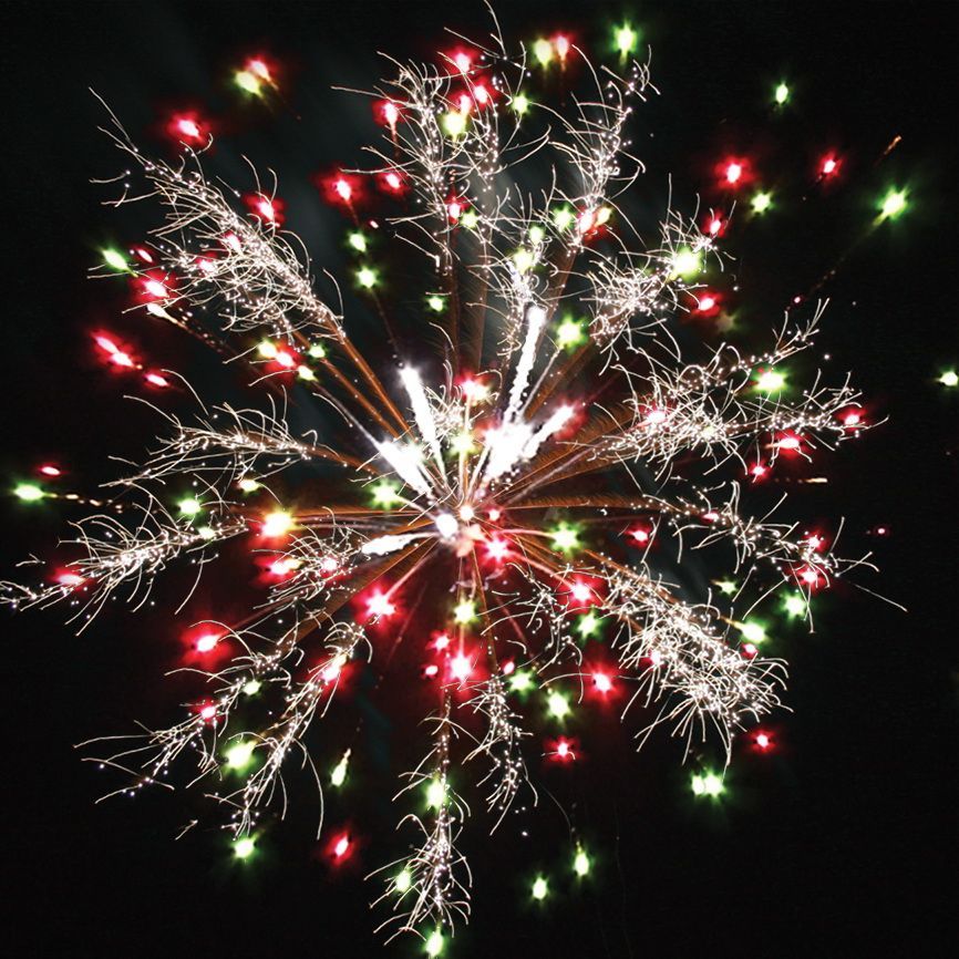 2-3. красных, зелёных и белых мерцающих огней, серебряных трещащих искр;
