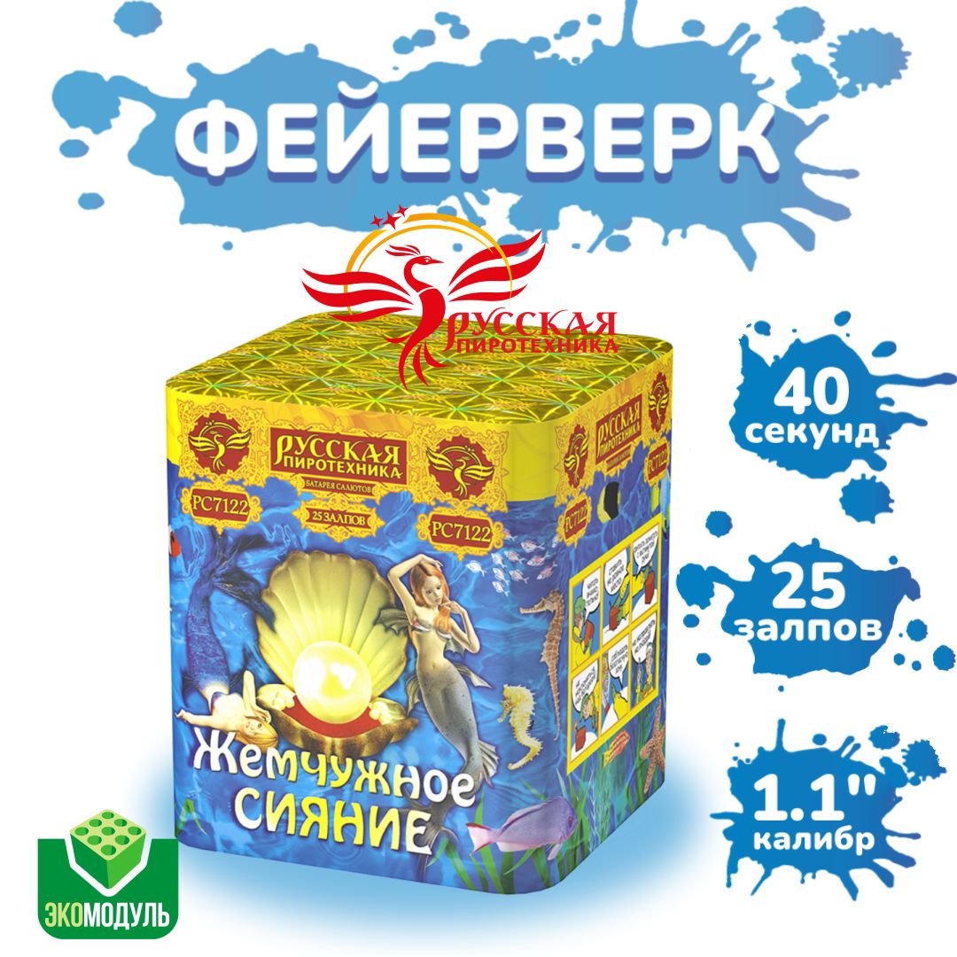 "Жемчужное сияние" - это батарея салютов, которая превращает ночное небо в настоящую живую жемчужину. Ее эффекты поражают воображение и создают неповторимую атмосферу праздника. Взрывы золотых и серебряных искр, мерцающие звезды и потрясающие цветочные композиции - все это делает "Жемчужное сияние" от "Русской пиротехники" настоящим произведением искусства. Каждый выстрел - шедевр, оставляющий Вас безмолвными от удивления. Эта батарея салютов подойдет для любого торжественного мероприятия, будь то свадьба, юбилей или корпоративный вечер. Она создаст волшебную атмосферу и запомнится на долгое время как незабываемый момент в вашей жизни. Эффекты (изображены на картинке): Разноцветные кометы разрываются сферами из: