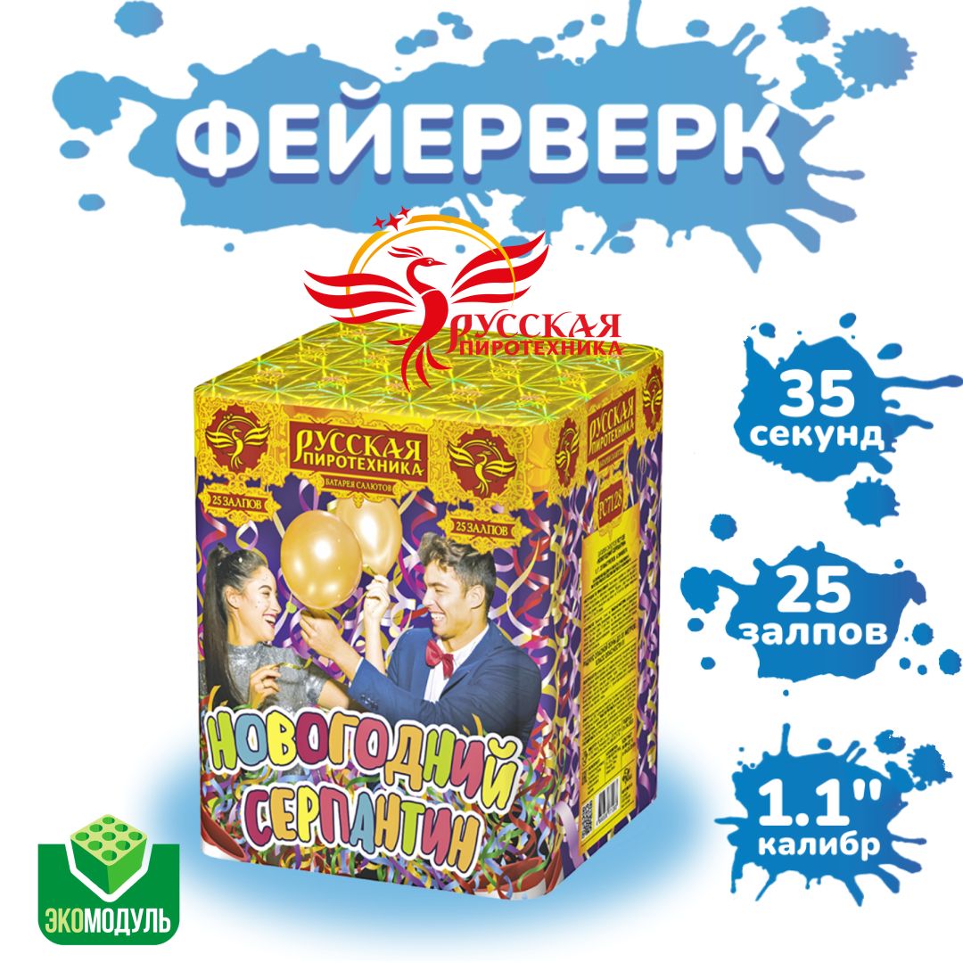 Новый год это время ожидания чудес и волшебства, когда все вокруг напоминает о празднике. И нет ничего более прекрасного, чем зажигать яркие салюты на небе, чтобы подарить себе и своим близким незабываемые впечатления. "Новогодний серпантин" от "Русской пиротехники" - это именно то, что нужно для создания атмосферы праздника и волшебства.Он наполнит небо яркими красками и создаст незабываемый эффект серпантина. Каждый выстрел сопровождается громким звуком, который добавляет эффектности и создает ощущение настоящего праздника. Эта батарея салютов станет настоящим украшением любого новогоднего торжества и оставит яркие воспоминания на всю жизнь.Насладитесь ярким и незабываемым пиротехническим шоу!Эффекты (изображены на картинке):Разноцветные кометы разрываются сферами из: