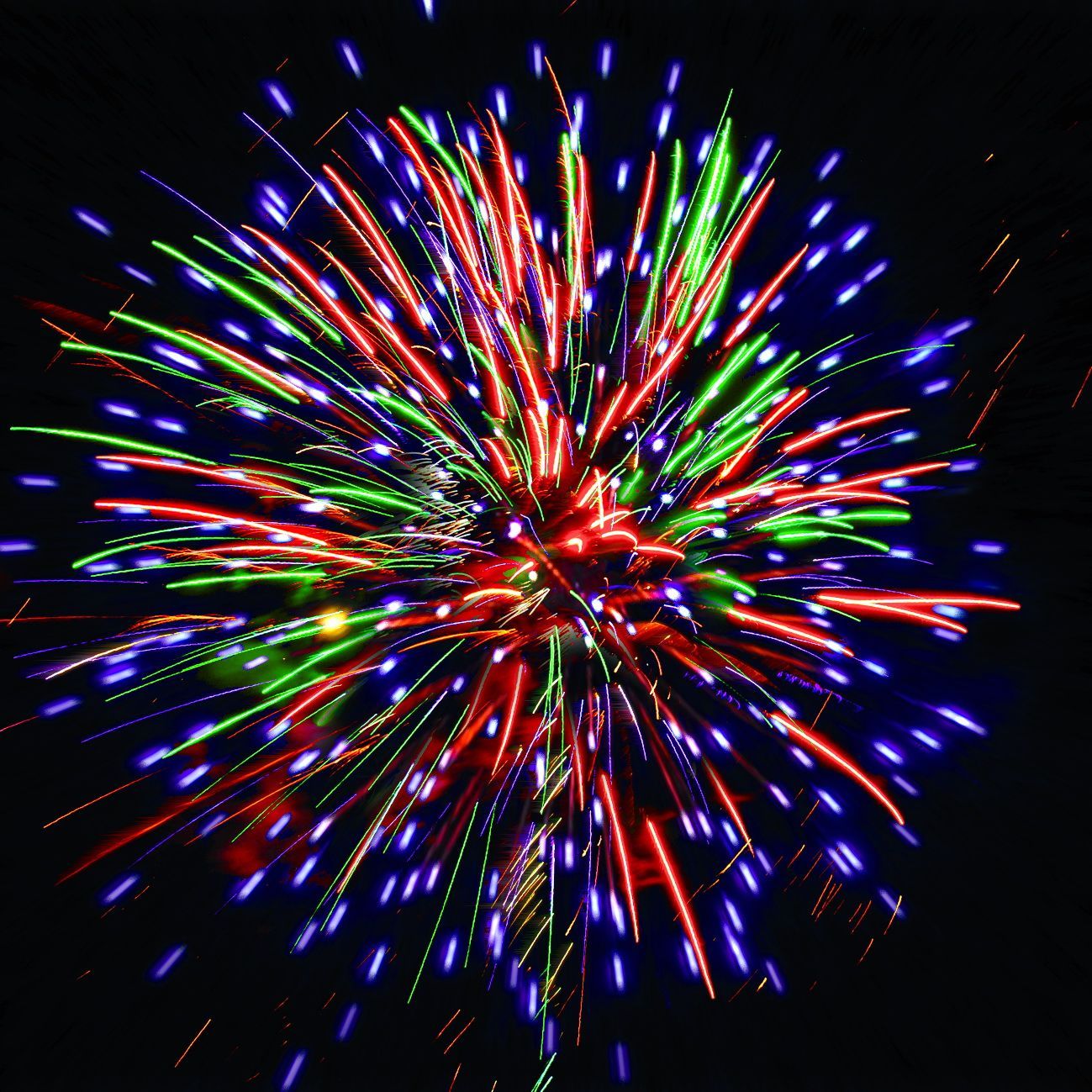 4. красных мерцающих огней и множеством трещащих сфер (залп).