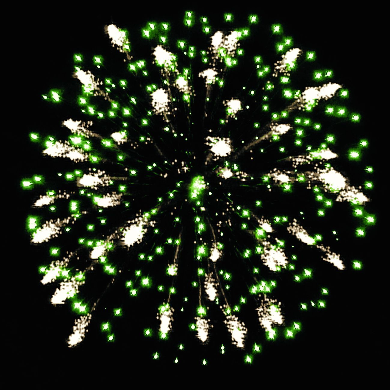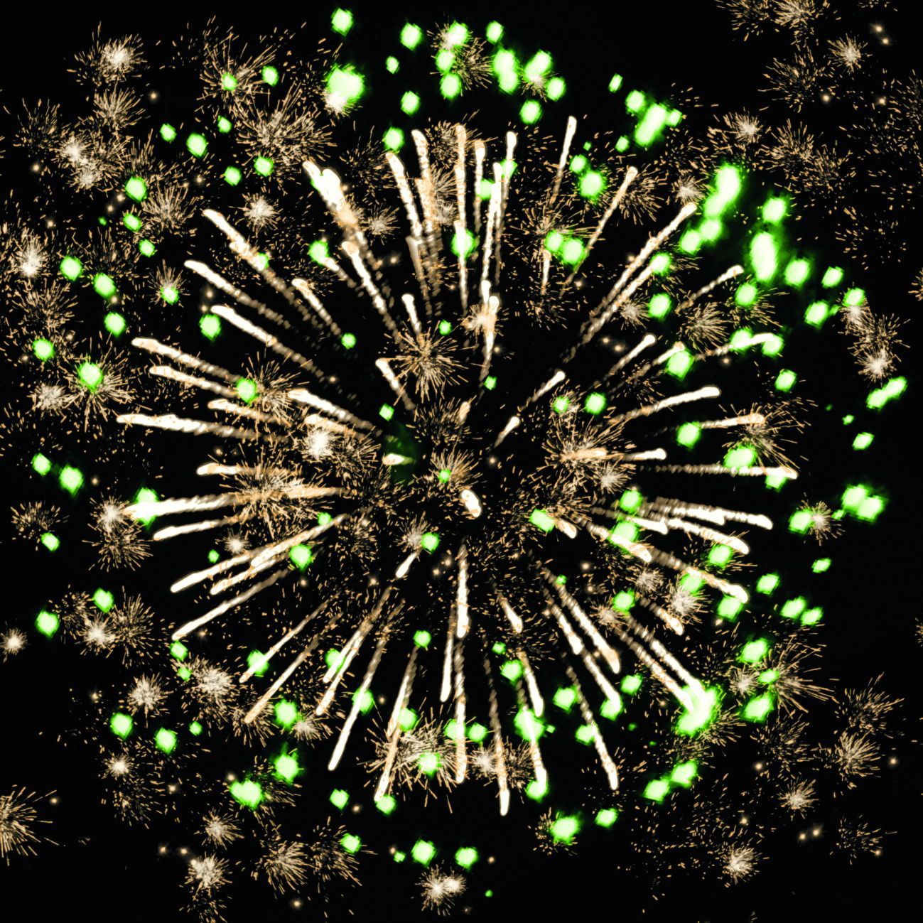 4-5. серебряных коротких трещащих форсов и зелёных мерцающих огней, множества серебряных трещащих искр;