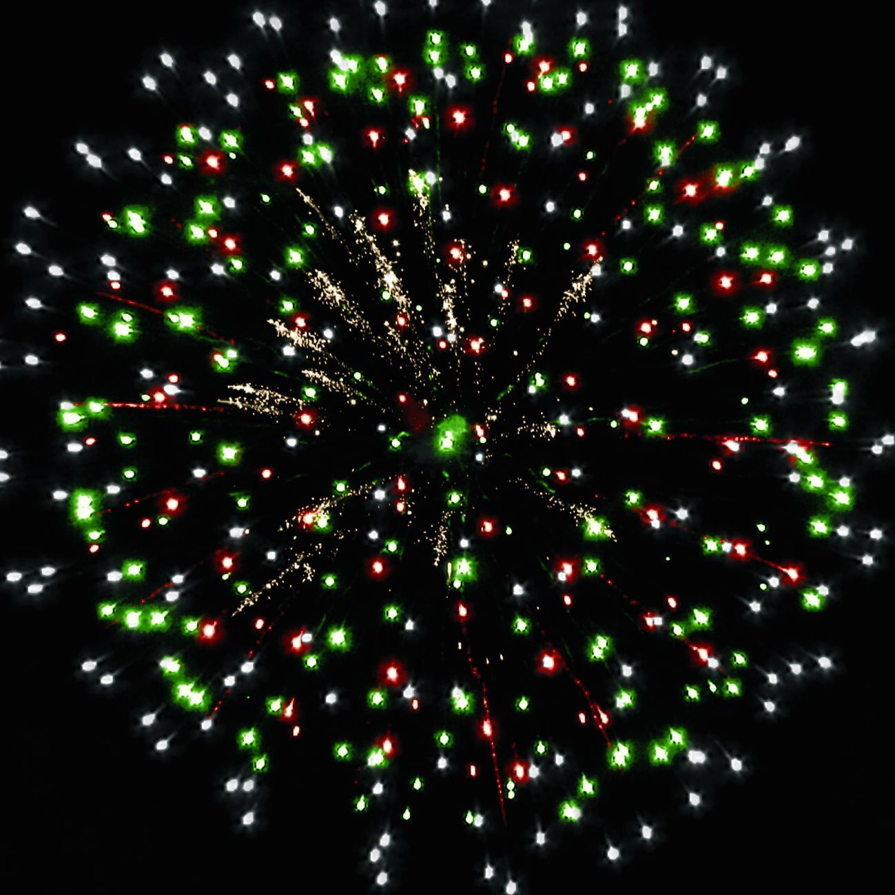1. красных, зелёных и белых мерцающих огней;