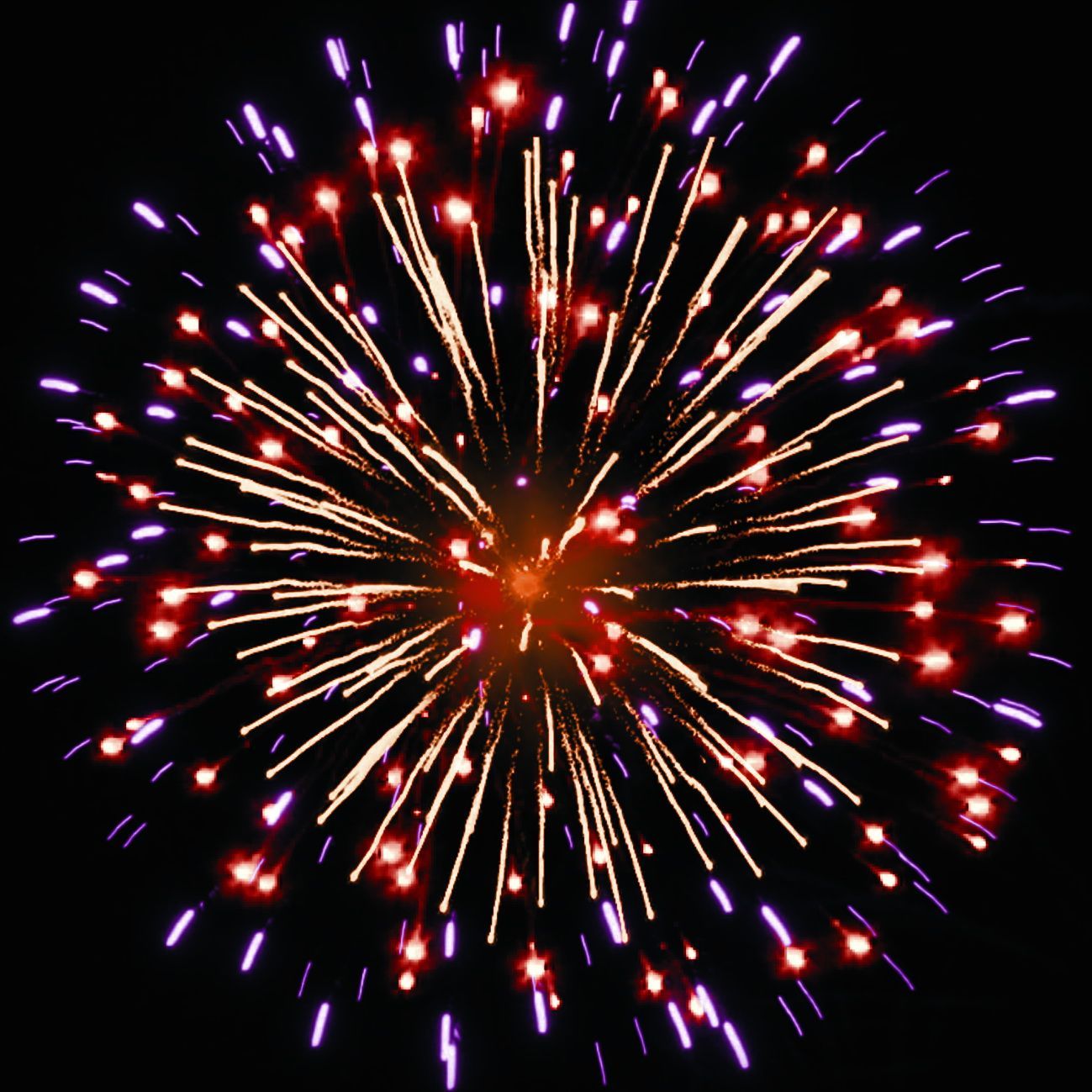 6. золотых форсов с серебряными искрами, фиолетовых и красных мерцающих огней.