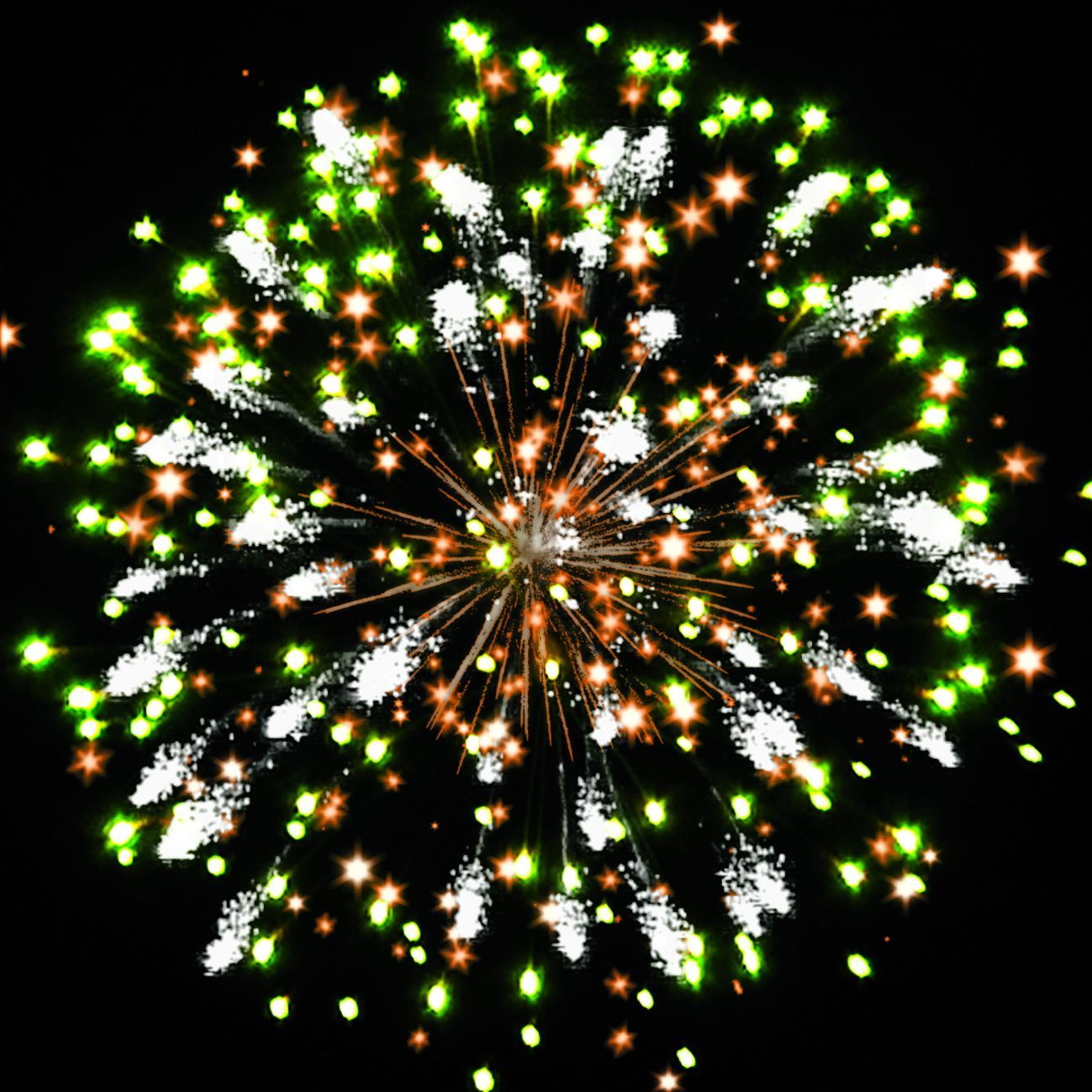 4. серебряных трещащих форсов, зелёных и золотых мерцающих огней;