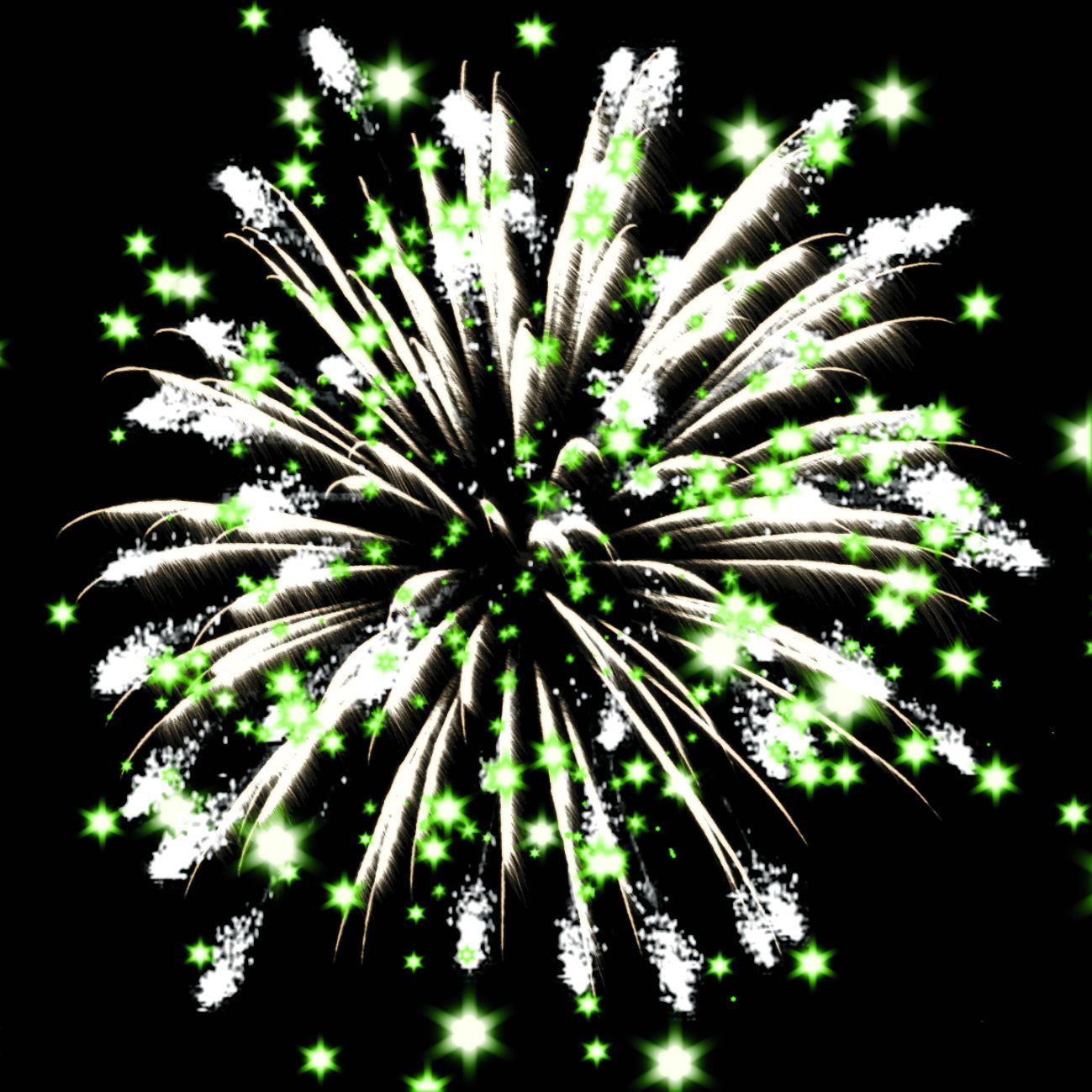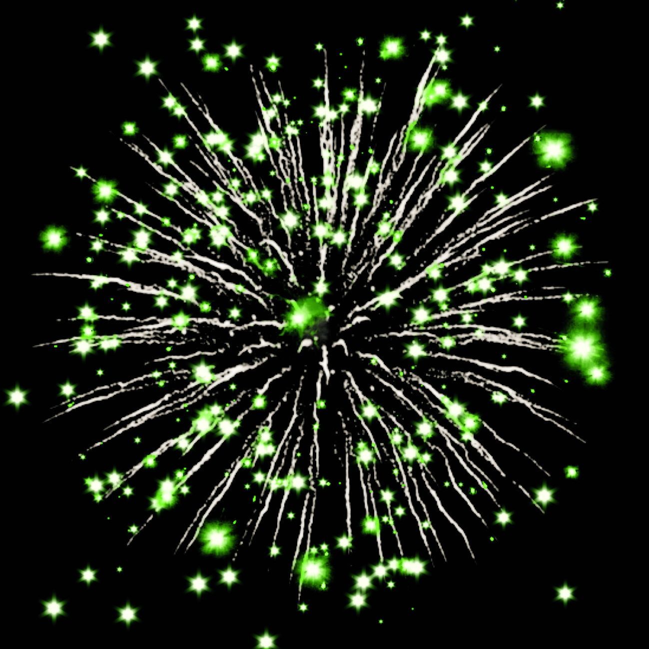 7. искристых трещащих форсов и зелёных мерцающих огней (залпы).
