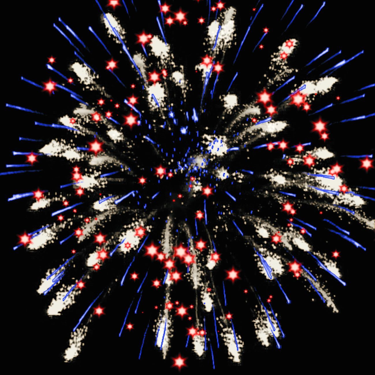 6. серебряных трещащих форсов, синих и красных мерцающих огней;