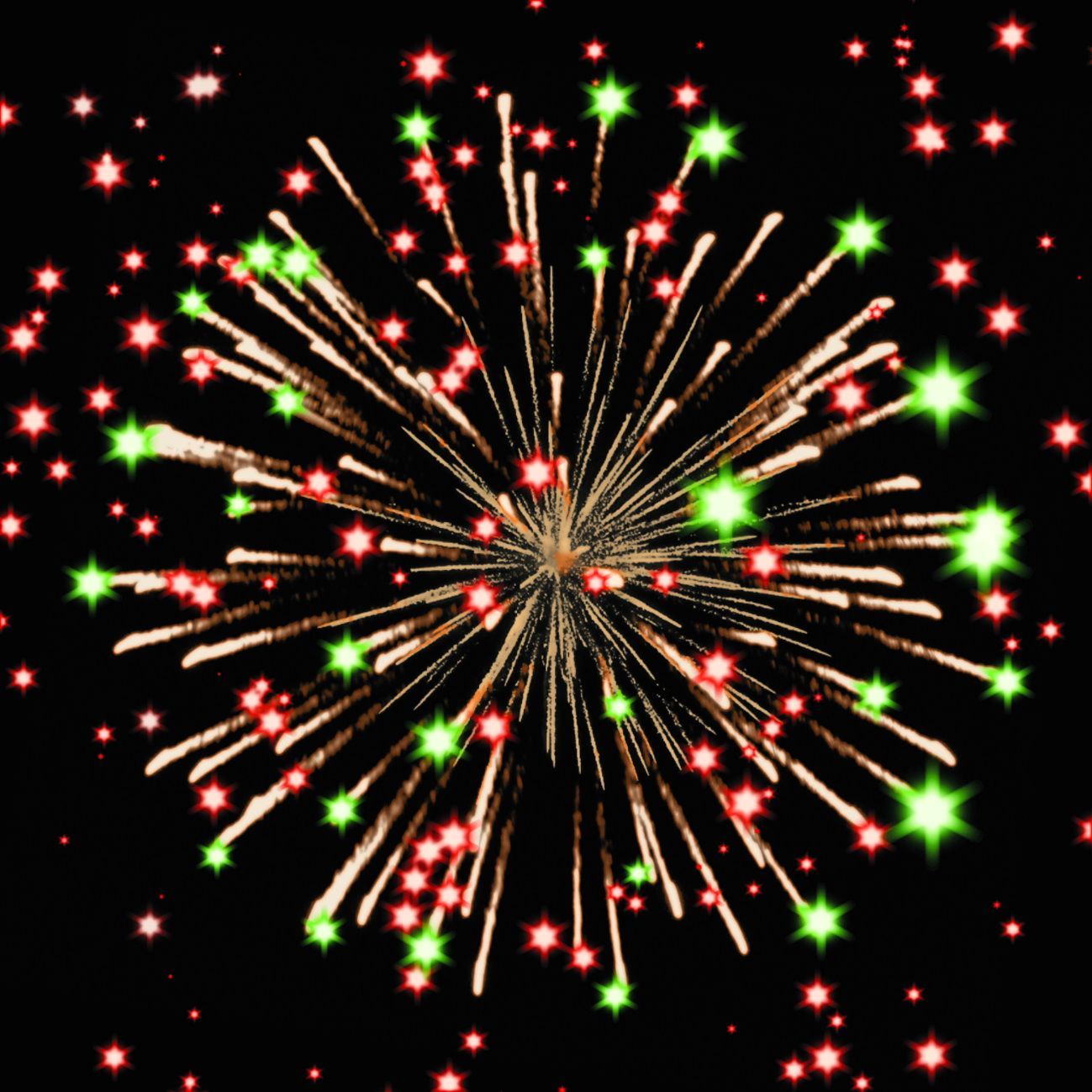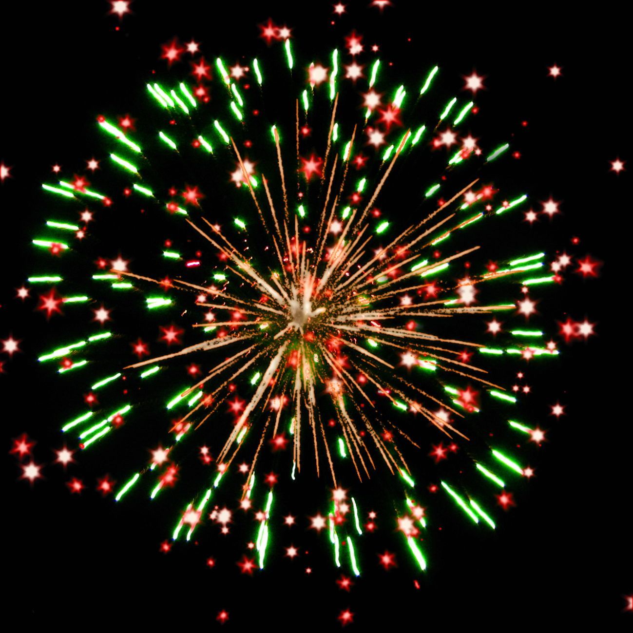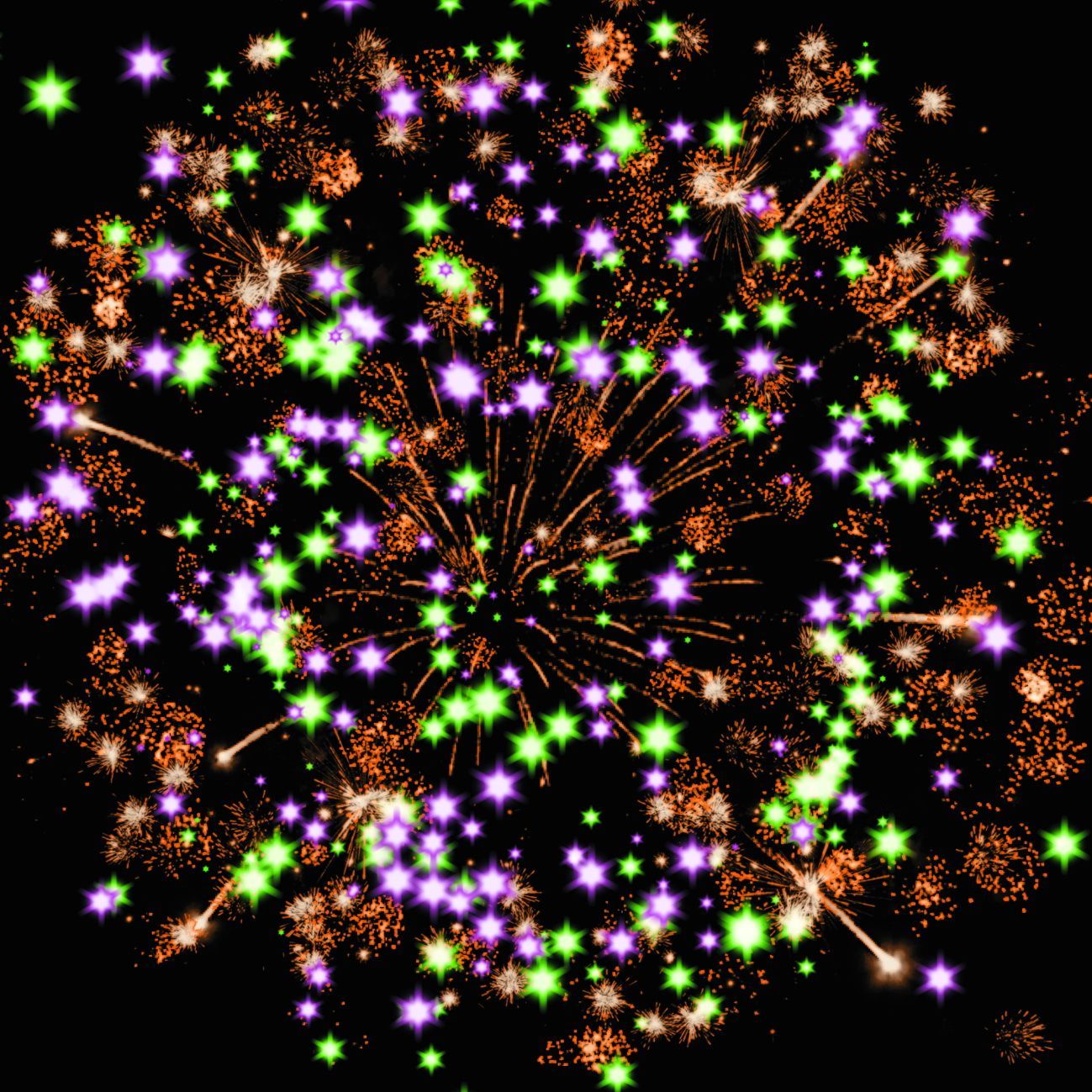 3-4. зелёных, фиолетовых, голубых и золотых мерцающих, трещащих огней;