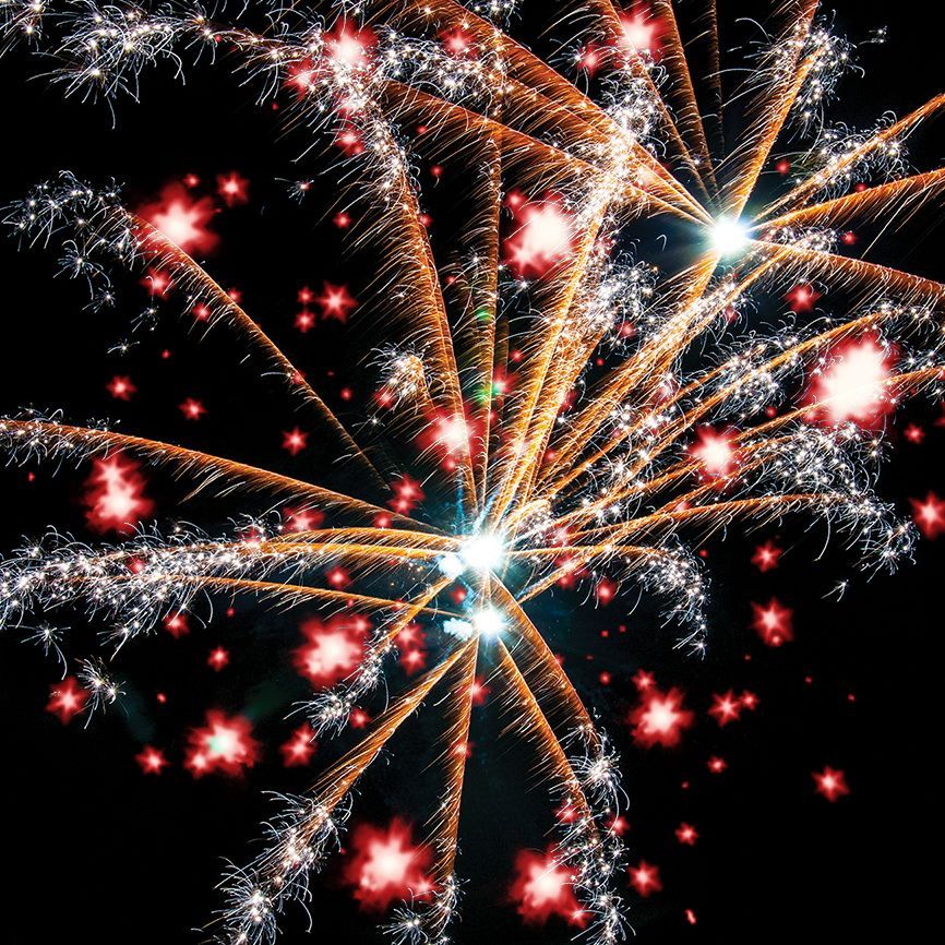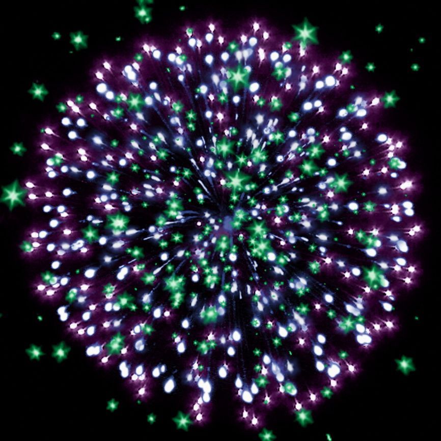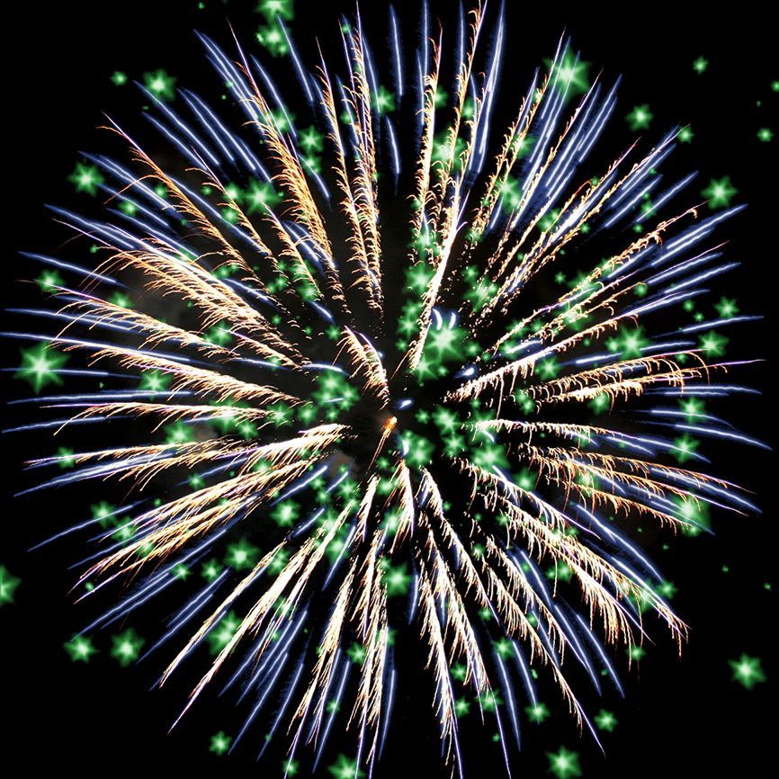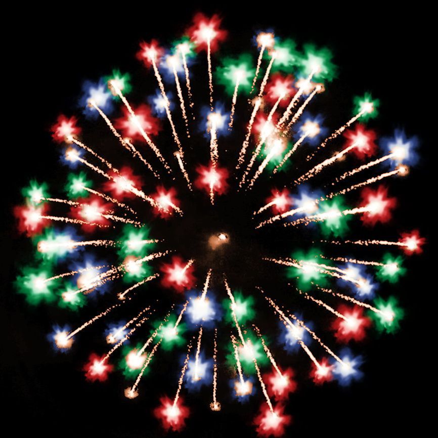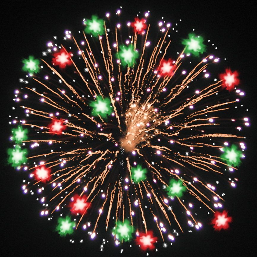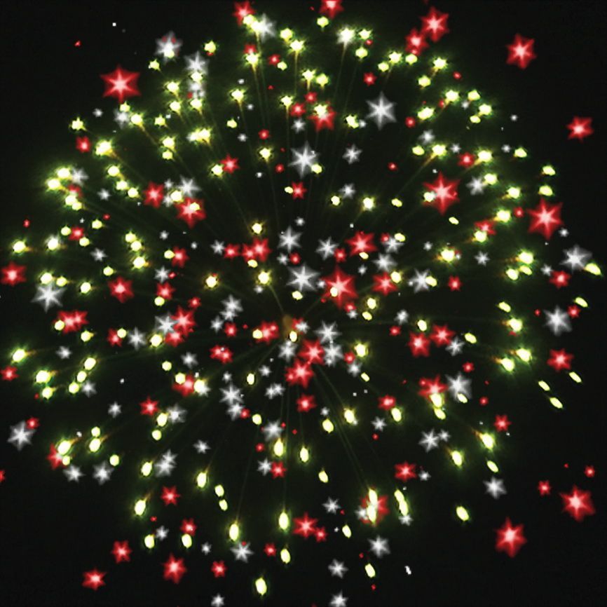 4. зелёных и красных мерцающих огней, переходящих в золотые искры;