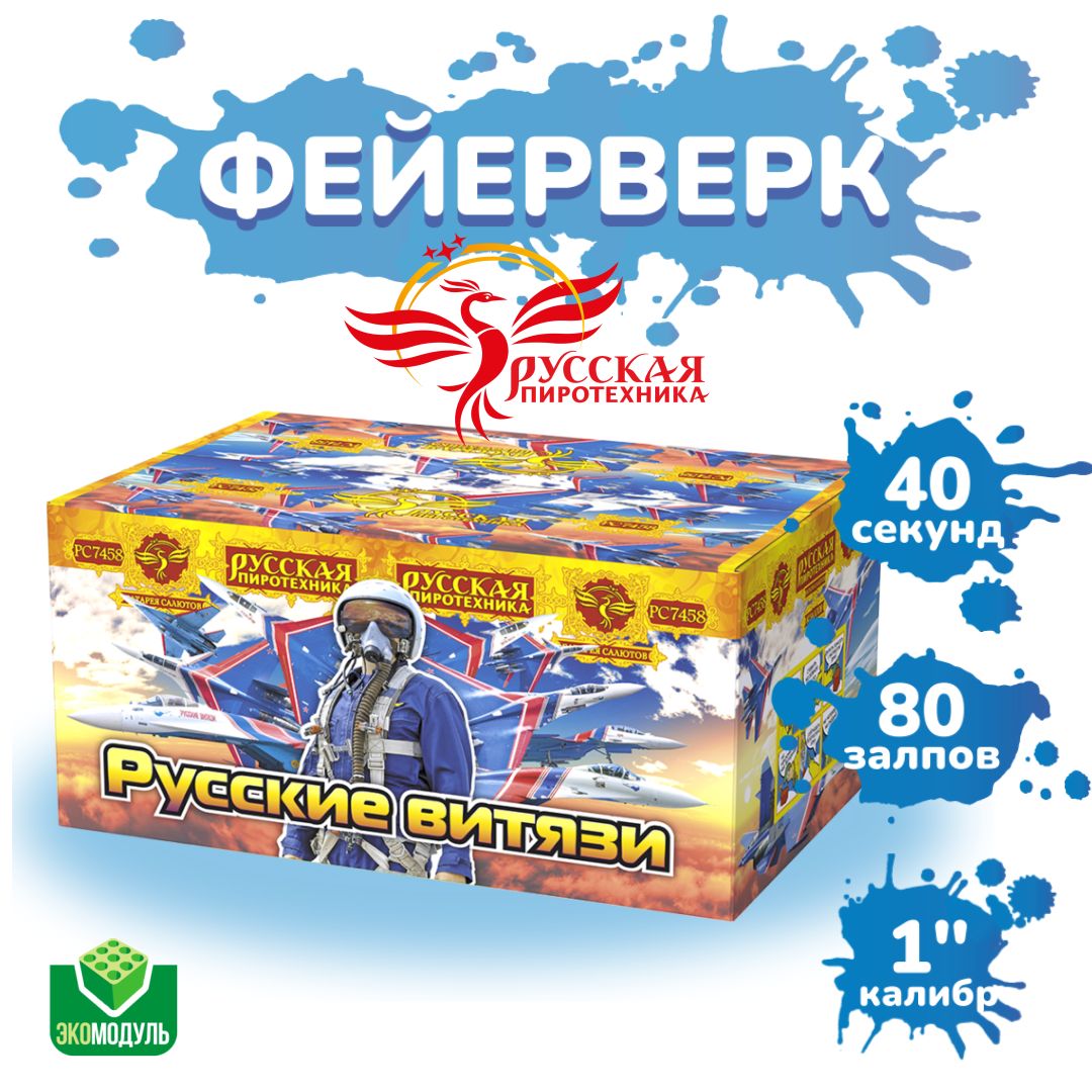 Батарея салютов "Русские витязи" - это настоящий шедевр в мире фейерверков. Каждый выстрел этой батареи напоминает о сильных и могучих русских витязях, героях и защитниках, которые всегда готовы пойти на подвиг ради своей Родины. Яркие искры огня, распространяющиеся по всему небу, создают неповторимые образы и формы, словно картины, написанные самими художниками. Вспышки различных цветов и оттенков, атмосфера таинственности и величия, заставляют нас восхищаться и удивляться каждому мгновению этого фейерверка от "Русской пиротехники"! Эффекты (изображены на картинке):Разноцветные кометы разрываются сферами из: