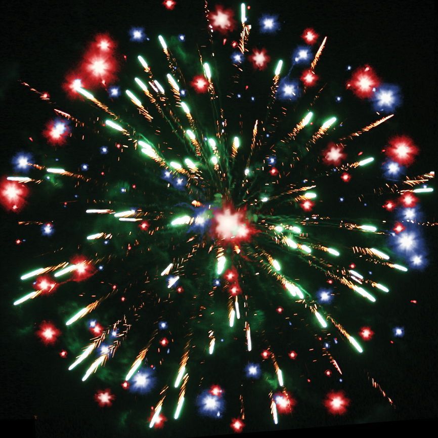 3. серебряных форсов, красных огней и серебряных трещащих искр.