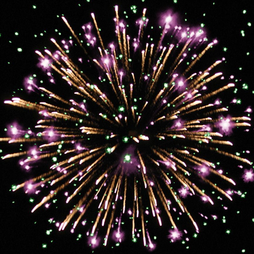 2. коротких золотых форсов, крупных фиолетовых и мерцающих зелёных огней;