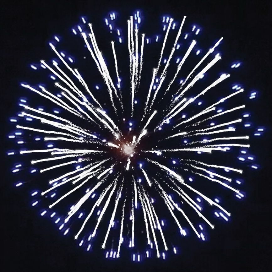 3. коротких форсов с серебряными трещащими искрами, синих и красных мерцающих огней;