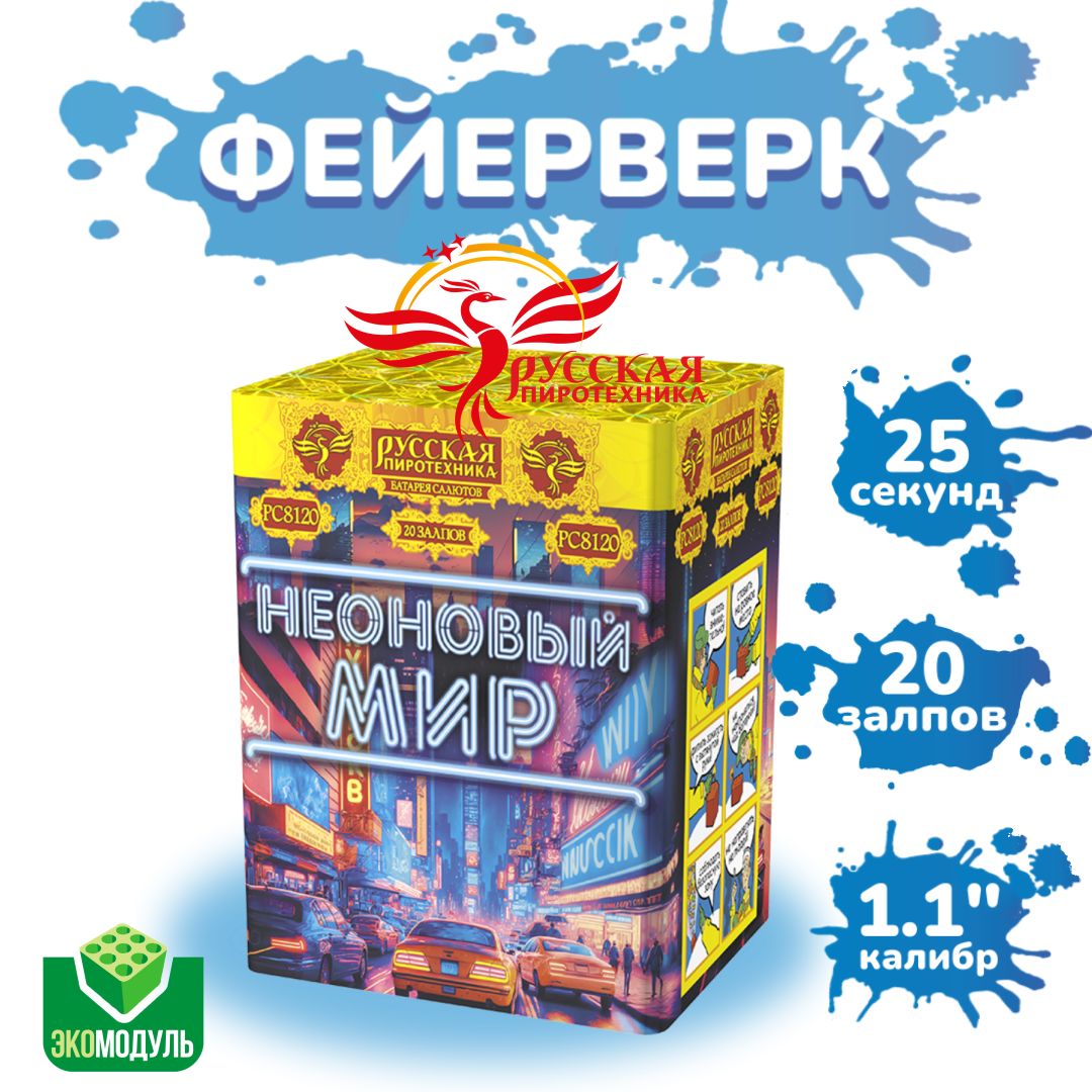 Батарея салютов "Неоновый мир от "Русской пиротехники" - это магическое шоу, где взрывы огненных шаров создают невероятные комбинации цветов и форм. Яркие и насыщенные тона пронизывают ночное небо, заставляя его зажигаться ярче, чем когда-либо.Огни, словно живые существа, танцуют в воздухе, переливаясь от ярко-розового к зеленому, от синего к фиолетовому. Они создают удивительные образы и рисунки, словно художник работает на холсте небес.Эффекты (изображены на картинке):Разноцветные кометы разрываются сферами из: