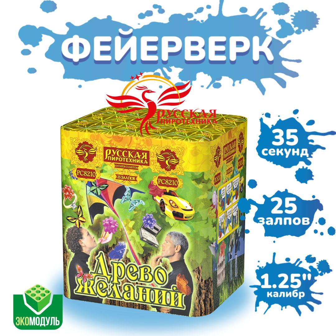 Это настоящее воплощение мечты и фантазии. Каждый выстрел этой батареи - это новая ветвь на древе желаний, которая оживляет ночное небо своей красотой и магией. Разноцветные звезды, яркие мерцания, золотые искры - все это создает неповторимую атмосферу загадочности и таинственности. Батарея "Древо желаний" напоминает о том, что мы все можем мечтать и верить в свои силы. Приготовьтесь к путешествию в мир фантазии и волшебства, которое перенесет Вас в самое сердце своих желаний. Фейерверк "Древо желаний" от "Русской пиротехники" - это настоящее чудо, которое нельзя пропустить! Эффекты (изображены на картинке): Разноцветные кометы разрываются сферами из: