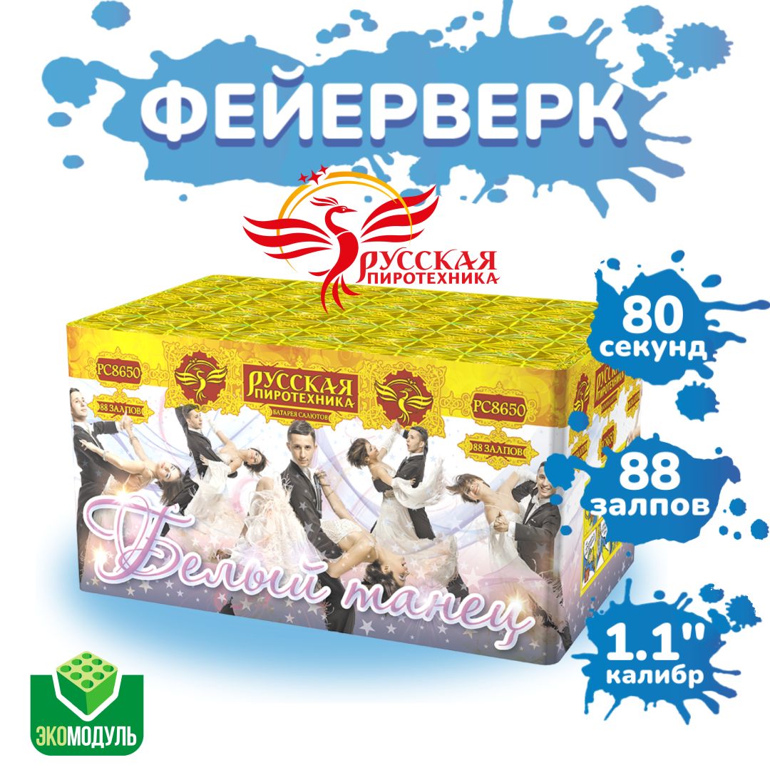 Батарея салютов "Белый танец" - это невероятно элегантное и изысканное зрелище, которое захватывает воображение и оставляет незабываемые впечатления. Как будто в небе развертывается самый прекрасный и изящный танец, исполненный множеством ярких и блистательных цветов.Каждый выстрел приносит с собой новую волну красоты и грации, словно танцоры на сцене создают магическую атмосферу и передают всю свою страсть и эмоции.Салют напоминает нам о важности наслаждаться моментом и ценить прекрасное в жизни, а также позволяет выразить свою глубокую благодарность всем художникам "Русской пиротехники", создающим эти волшебные шоу для нас.Эффекты (изображены на картинке):Разноцветные кометы разрываются сферами из:
