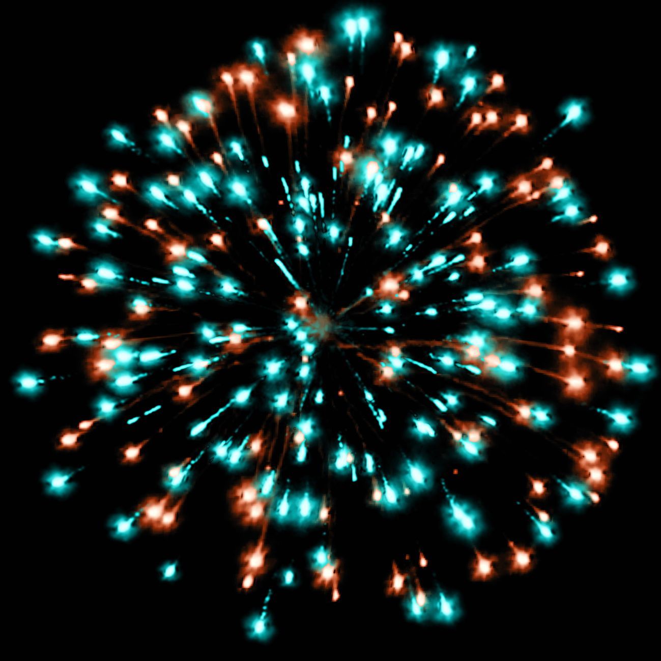 7. золотых форсов с серебряными мерцающими трещащими искрами и красных мерцающих огней;