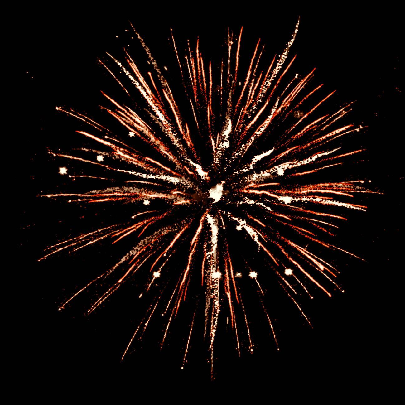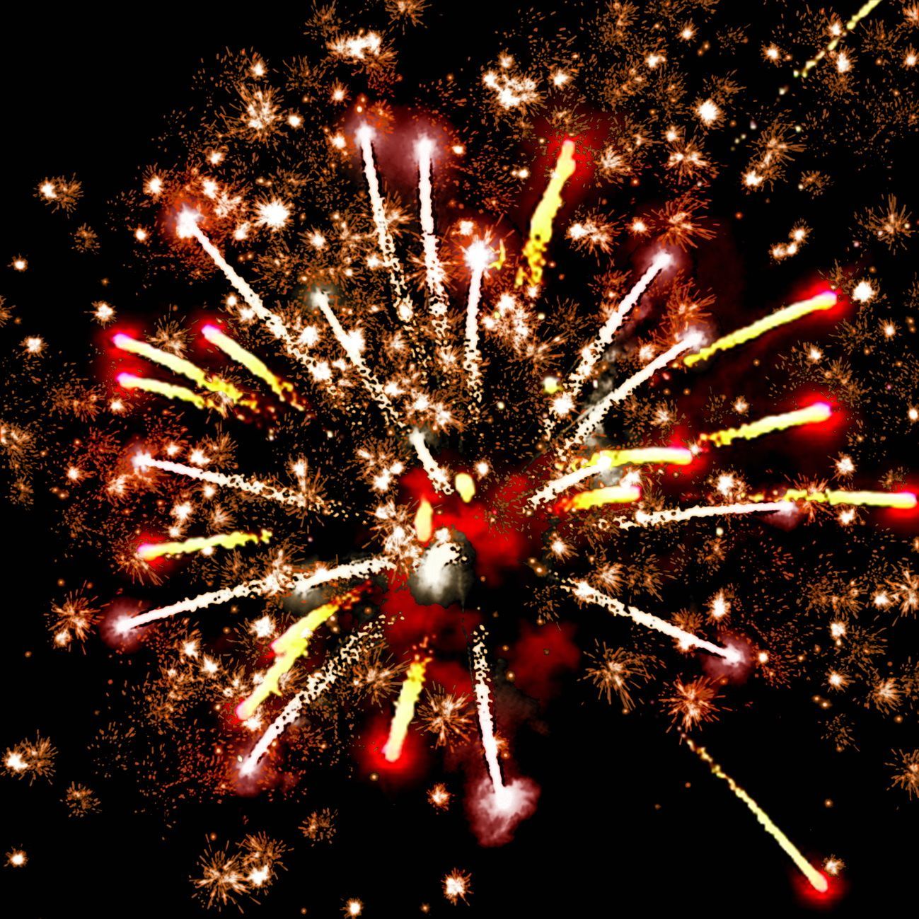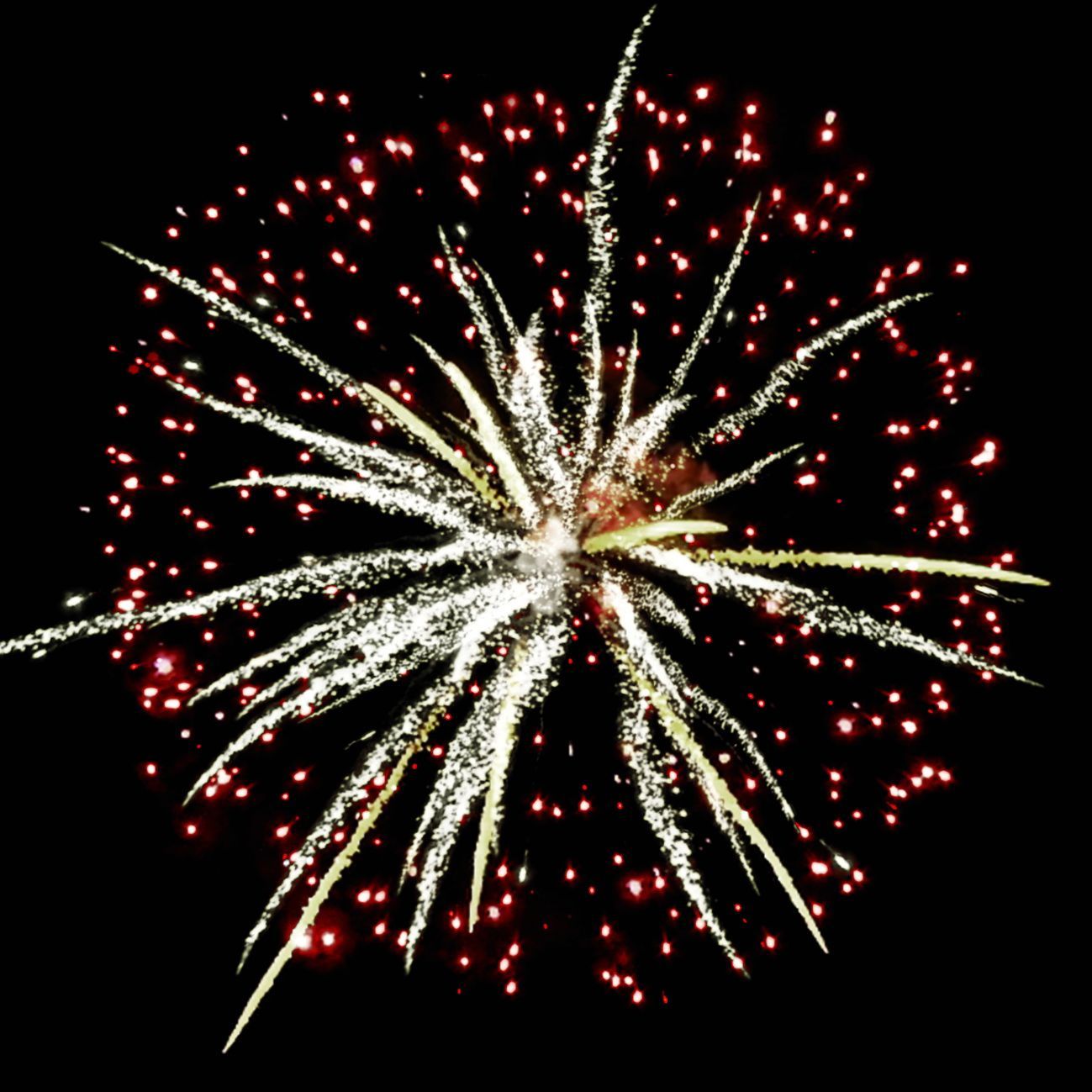 6. серебряных форсов с красными огнями на концах и трещащих огней;