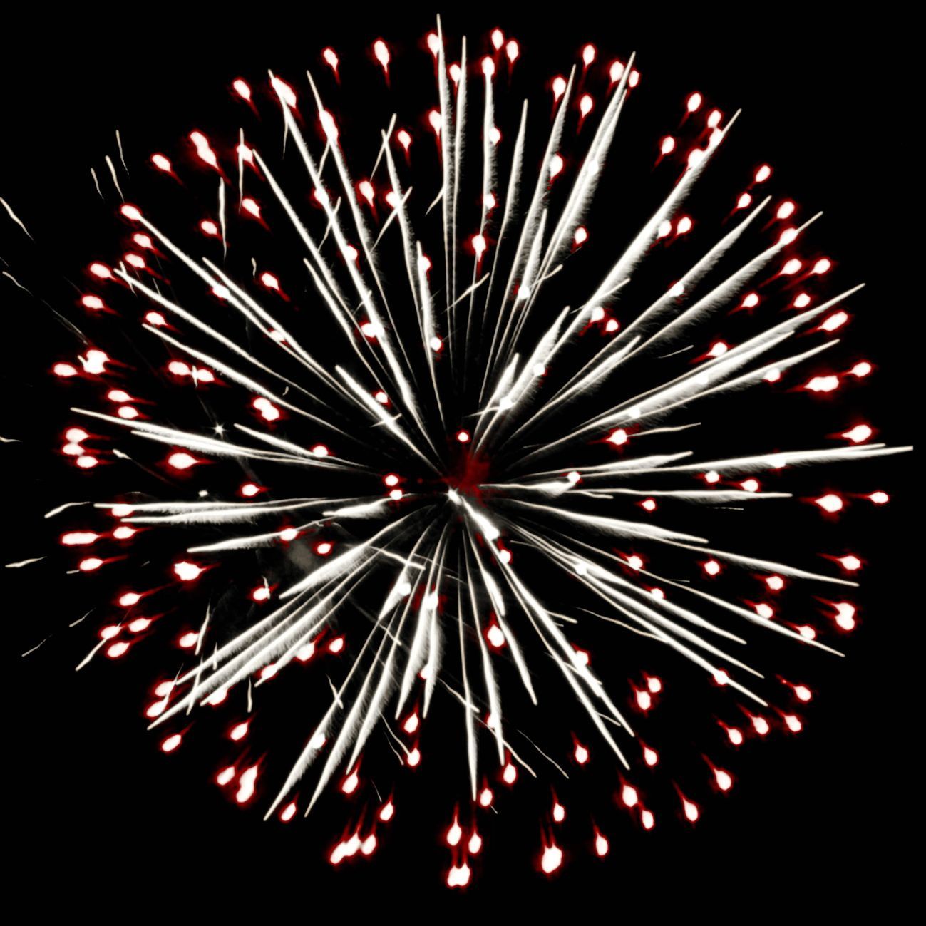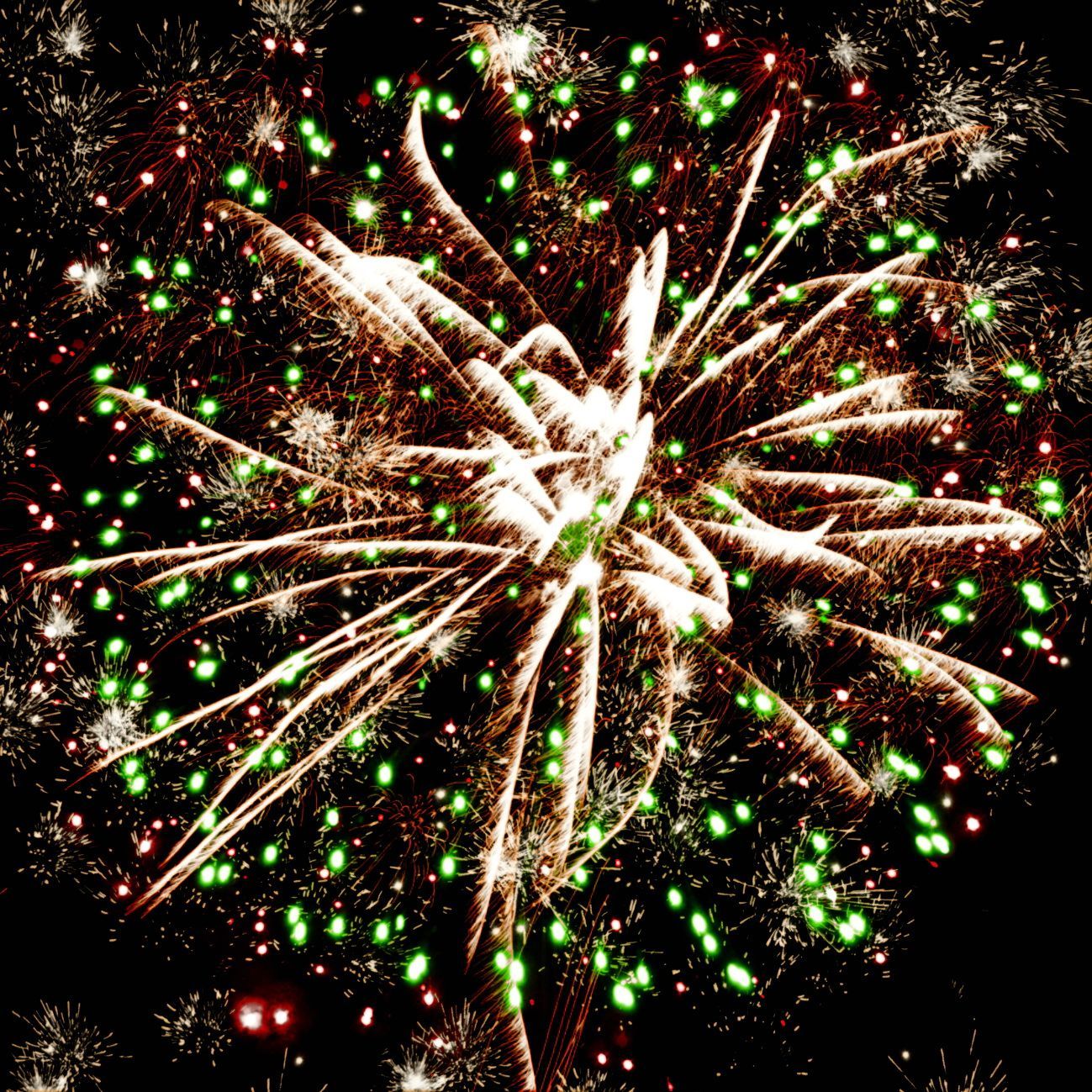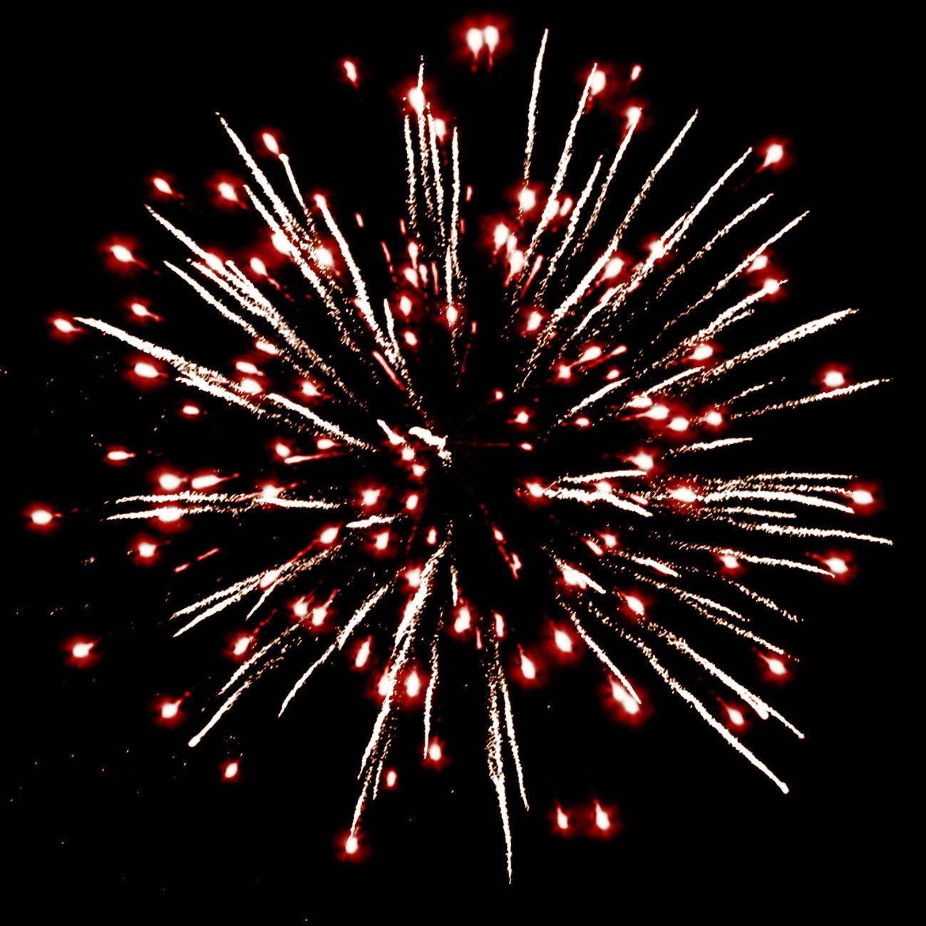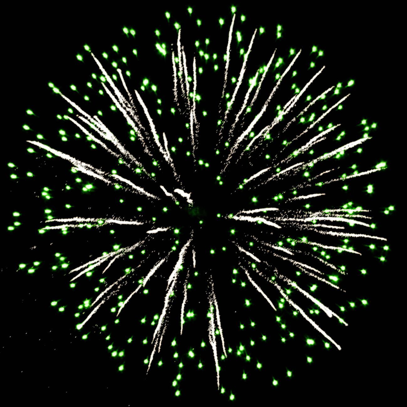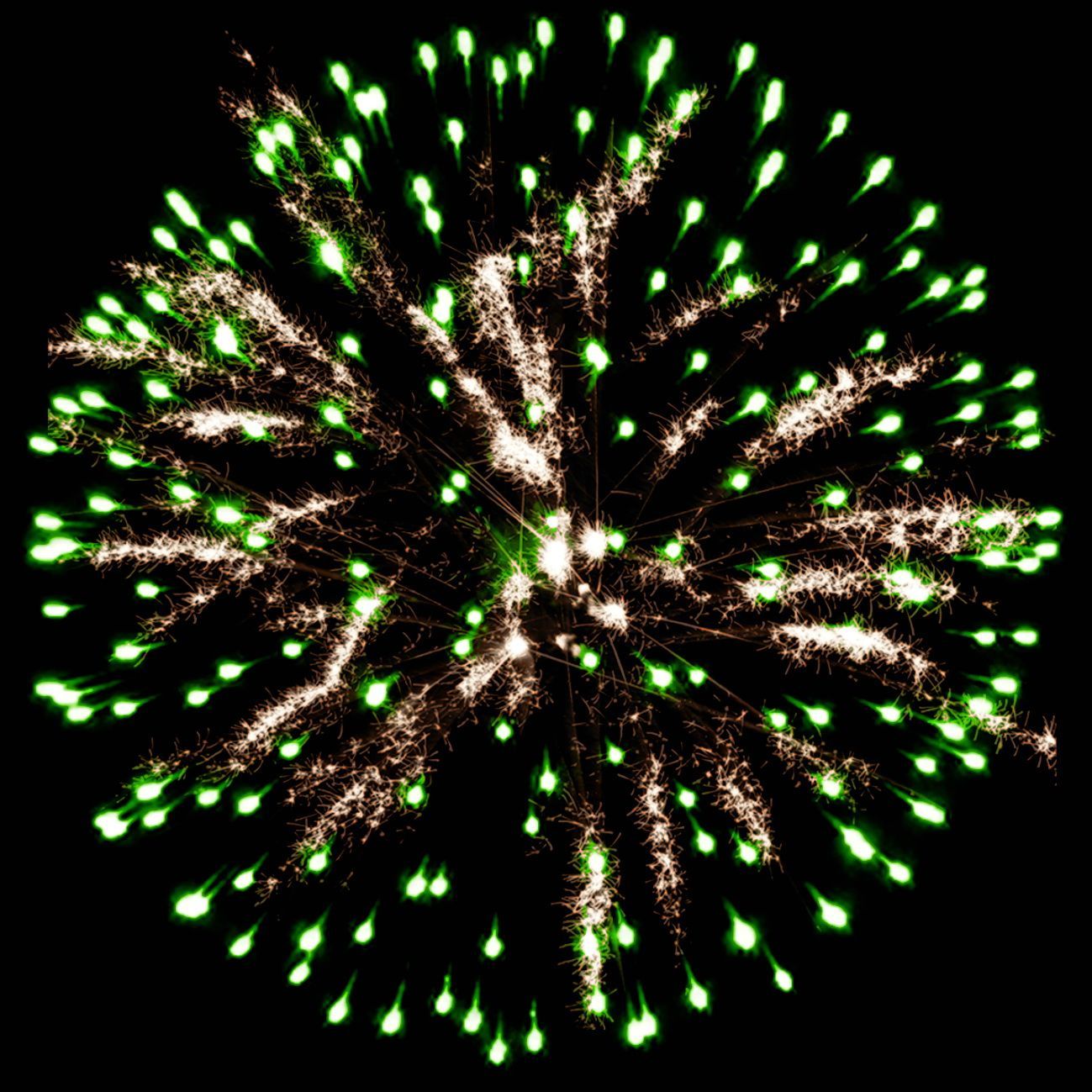 17. крупных красных и зелёных огней, множеством трещащих сфер (залпы).