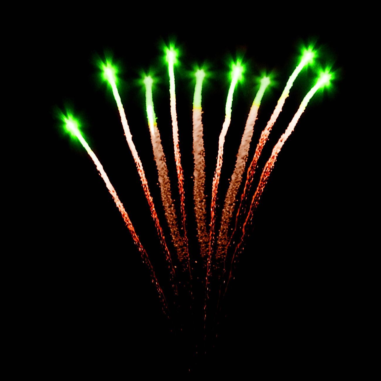 16. золотых форсов с трещащими серебряными искрами, красных и зеленых огней;