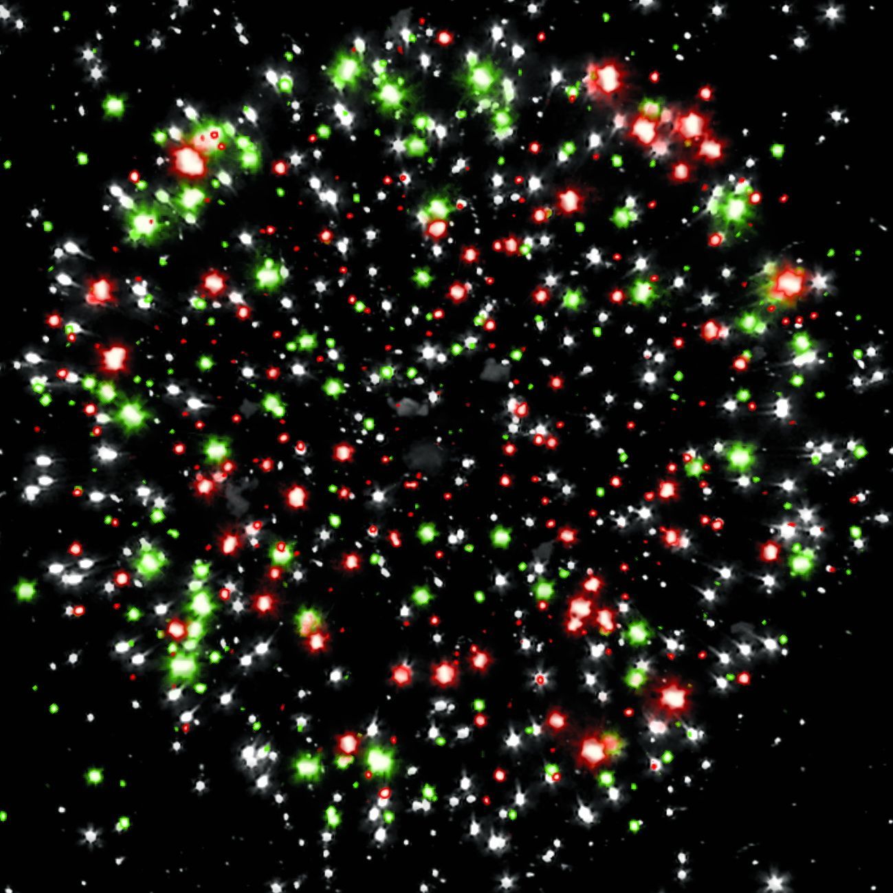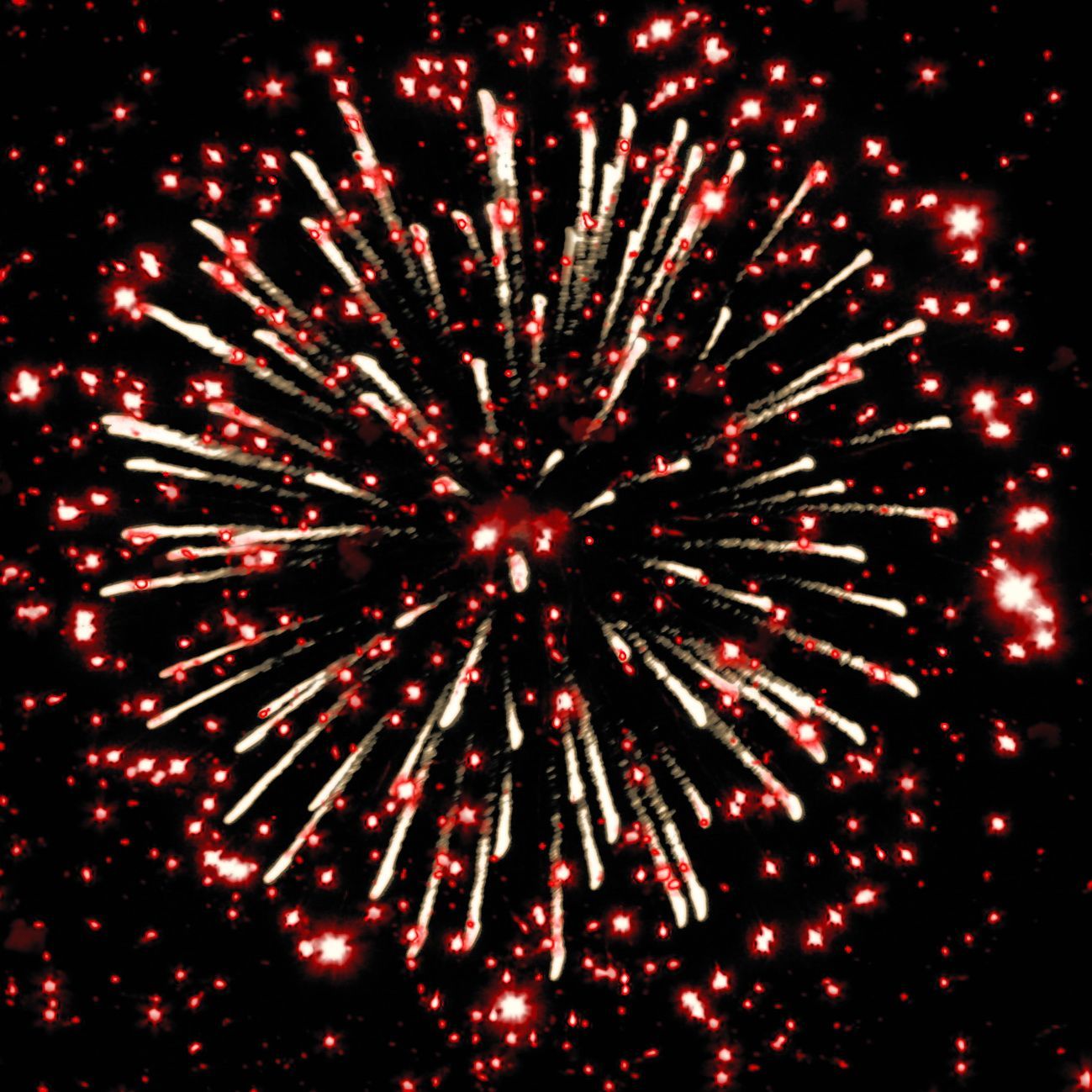 1-2. красных, жёлтых пульсирующих, зелёных, синих и золотых мерцающих огней;