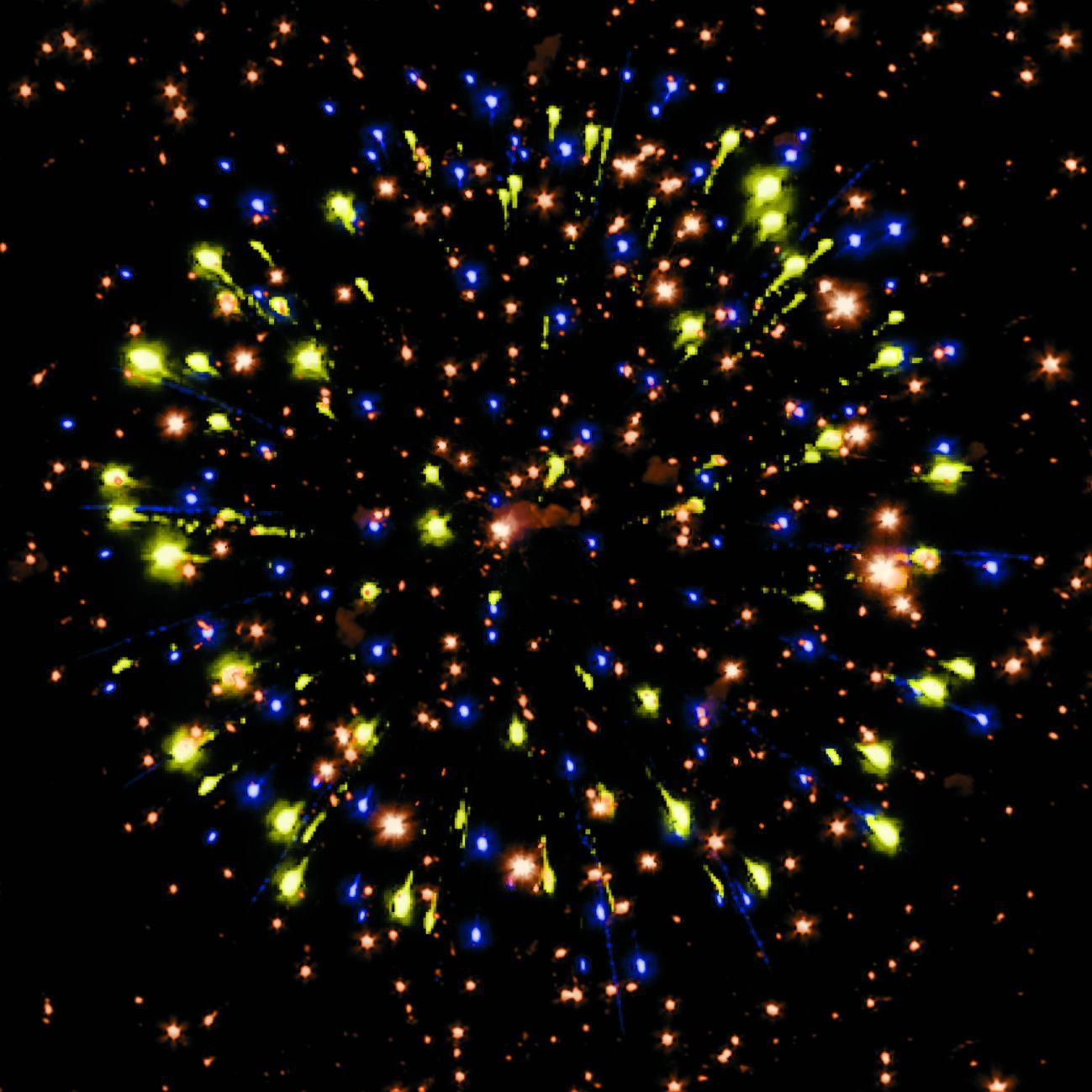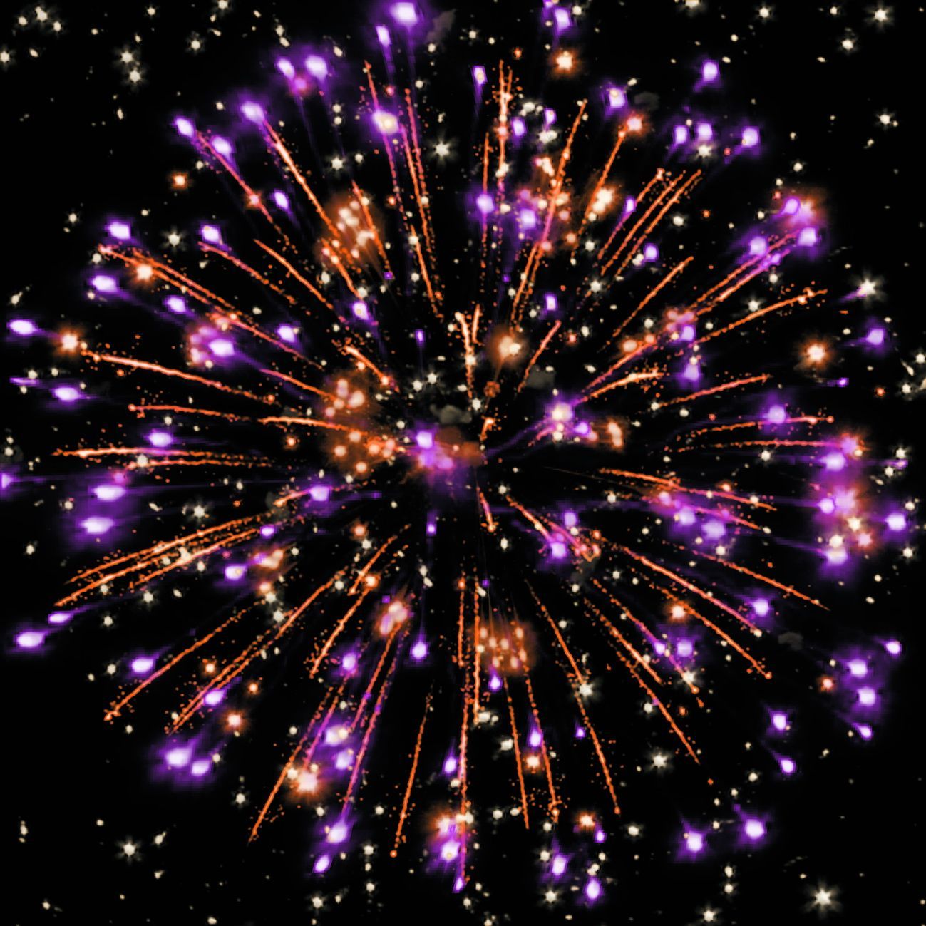 10. золотых с трещащими искрами форсов, фиолетовых и оранжевых огней;