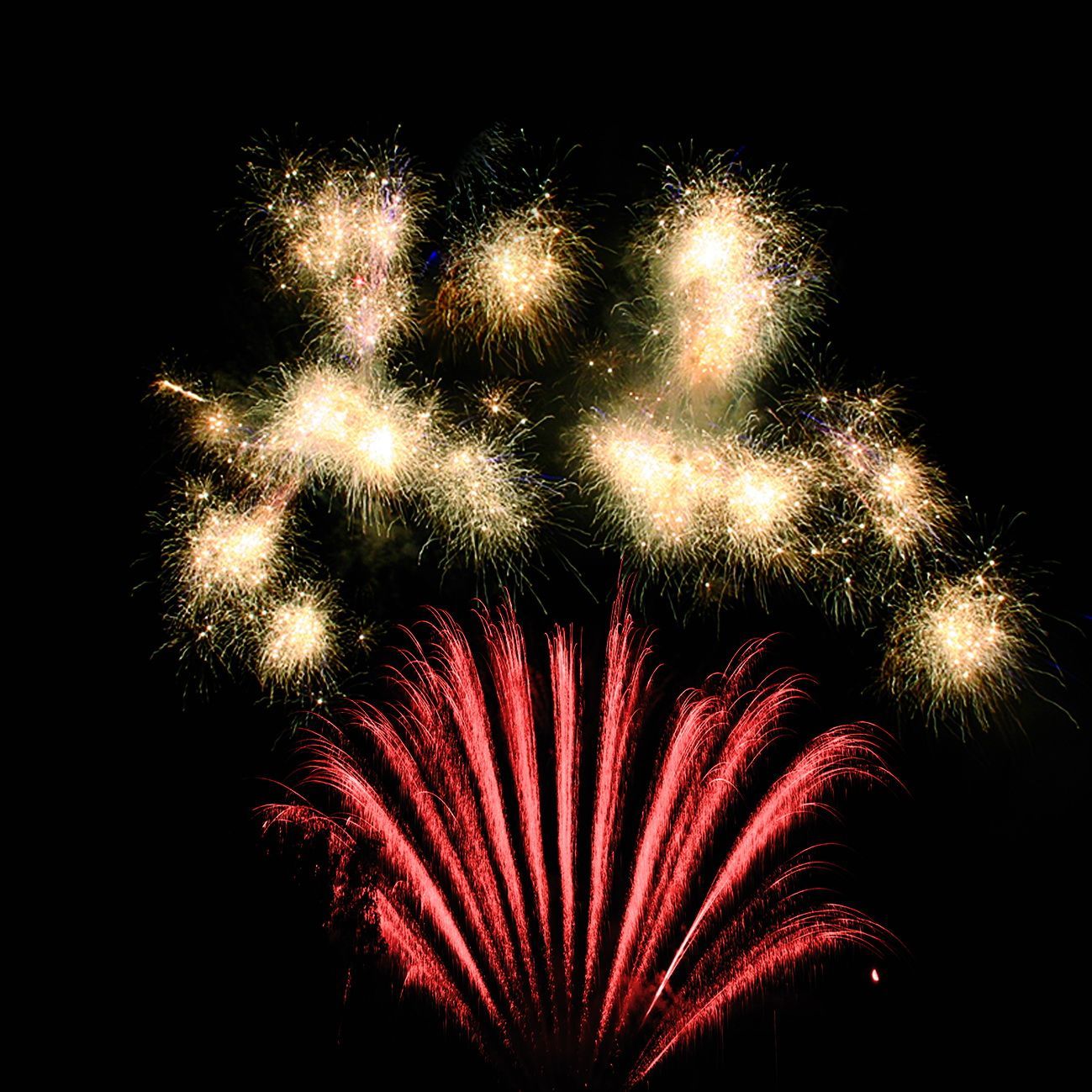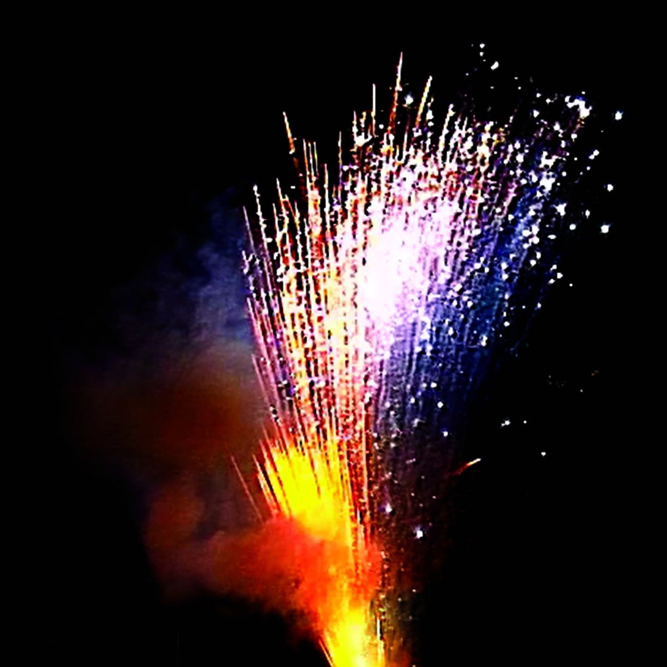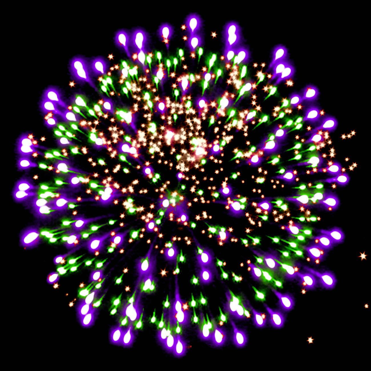 13. Веер: серебряные искристые трассы, сферы из золотых форсов, красных и зелёных огней.