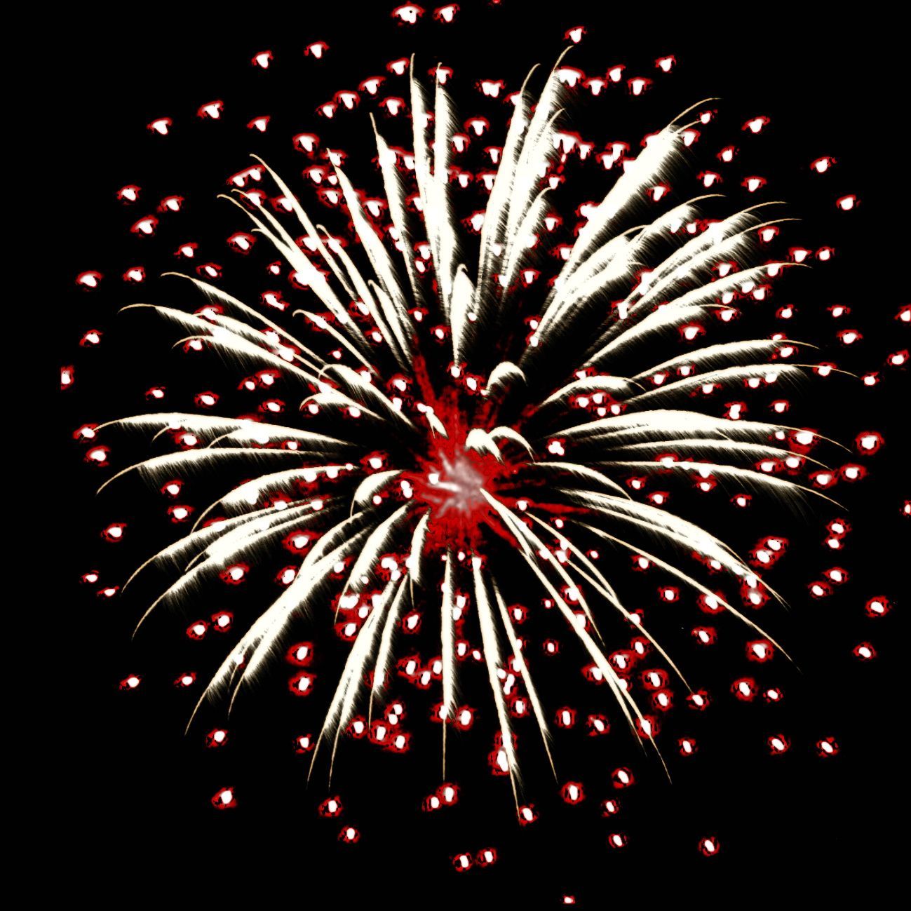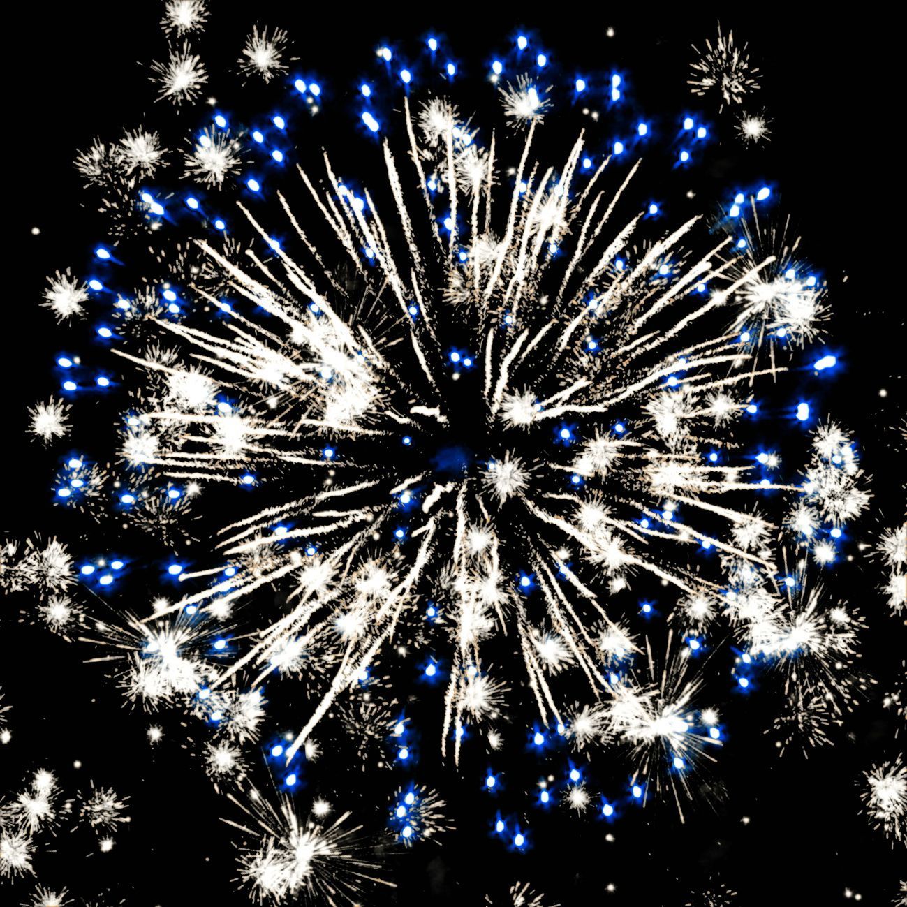12. Веер: серебряные трассы с белыми мерцающими искрами; золотые трассы с красными мерцающими искрами, сферы из золотых форсов с красными мерцающими искрами.