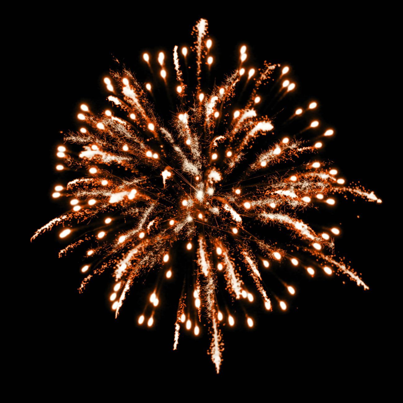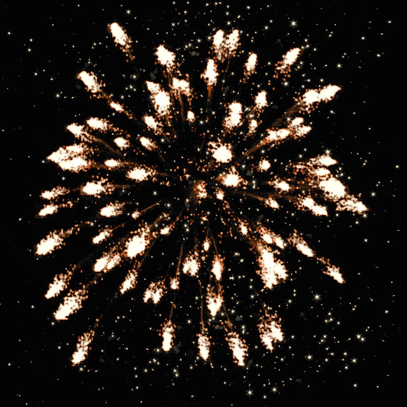 12. Веер. Золотые искристые трассы с красными огнями на концах, сферы из золотых искристых трещащих форсов и золотых мерцающих огней.
